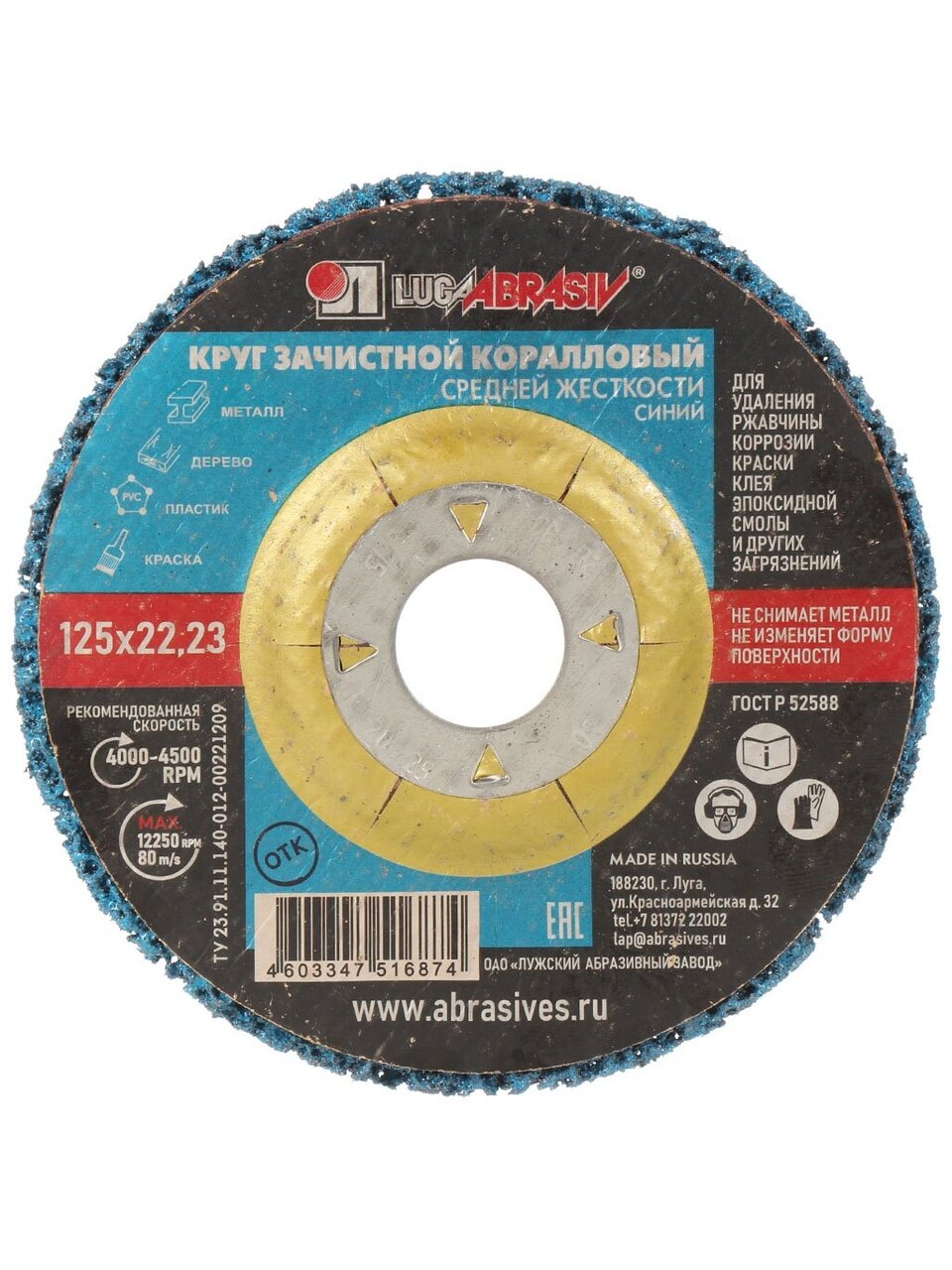 Вы можете приобрести «Круг шлифовальный LugaAbrasiv, диаметр 125 мм, посадочный диаметр 22.23 мм, зернистость 80, синий, коралловый, средней жесткости» и другие товары в нашем интернет-магазине в Белгороде по низким ценам и с бесплатным самовывозом.