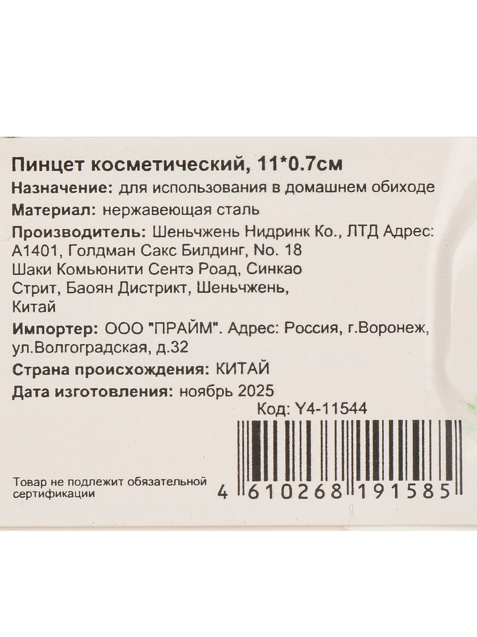 Закажите пинцет косметический 11х0.7см Y4-11544 с выгодной доставкой — получите профессиональный уход дома и в поездках. Гарантия качества и проверенный материал.