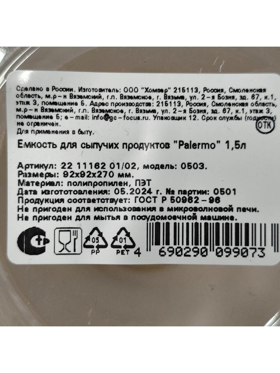 Вы можете приобрести «Банка для сыпучих продуктов, пластик, 1.5 л, 9.2х9.2х27 см, с крышкой, Homver, Palermo, 16201/02, прозрачная» и другие товары в нашем интернет-магазине в Астрахани по низким ценам и с бесплатным самовывозом.