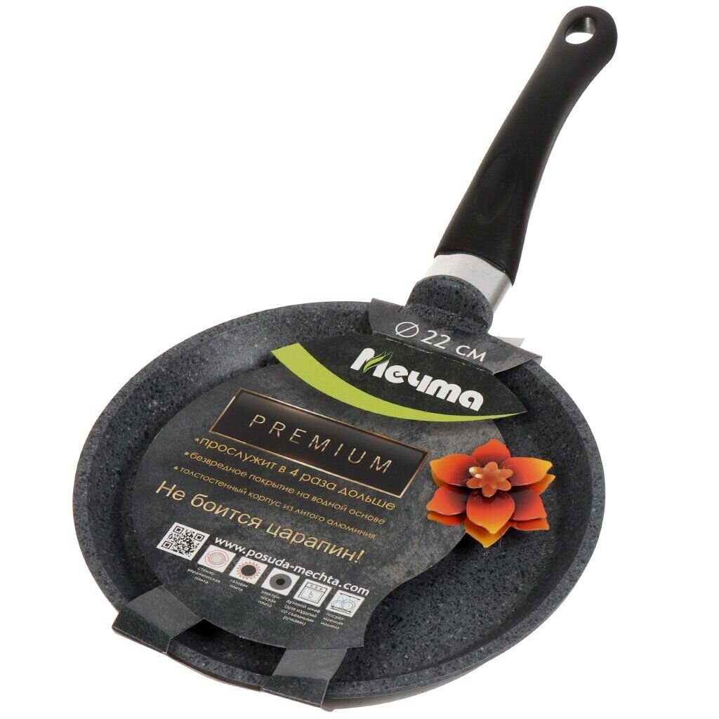 Откройте для себя идеальный инструмент для приготовления аппетитных блинов и других блюд - алюминиевая блинница диаметром 22 см с мраморным антипригарным покрытием от бренда "Мечта". Эта модель Premium grey станет незаменимым помощником на кухне благодаря своим уникальным характеристикам и современному дизайну.