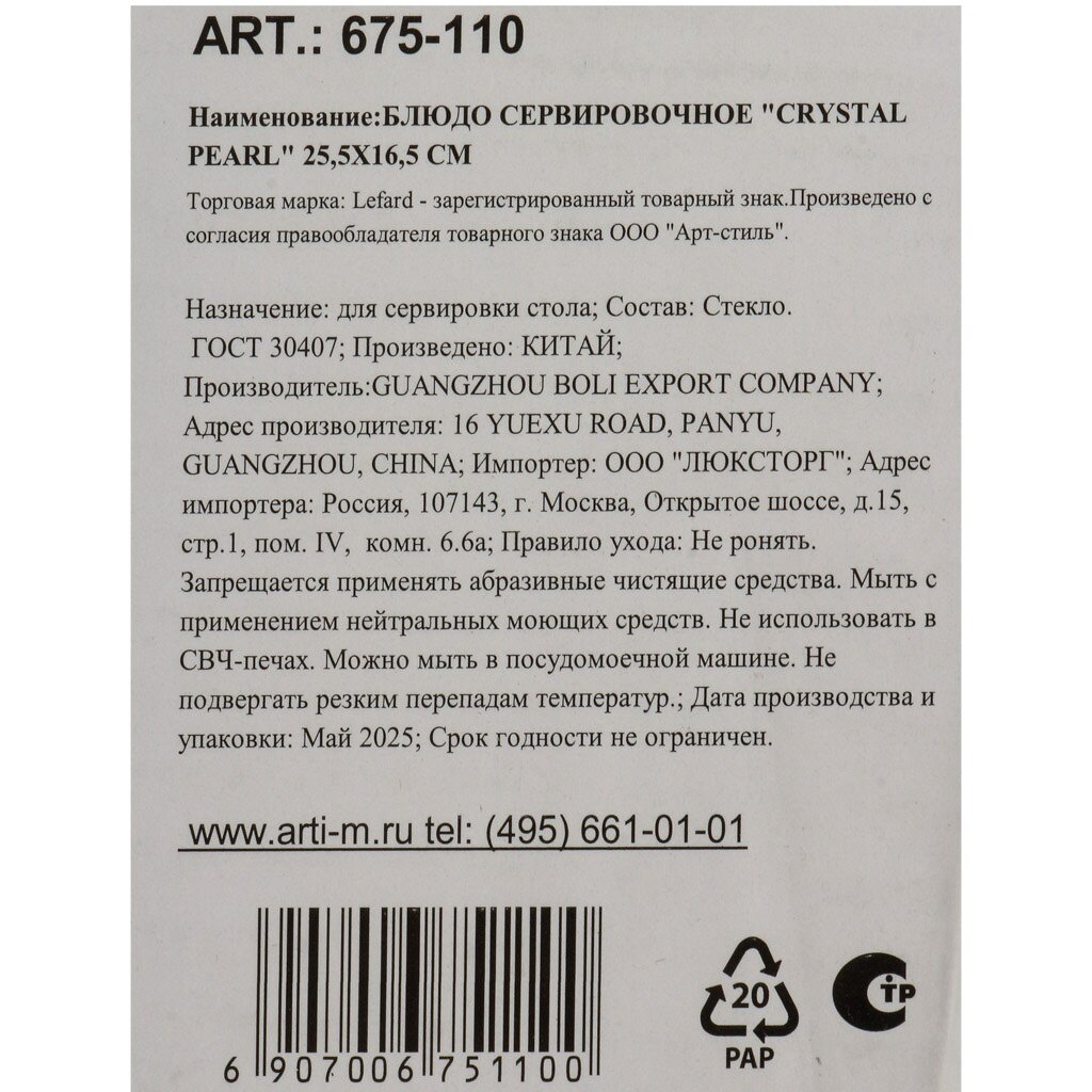 Блюдо овальное Lefard Crystal Pearl 25.5х16.5 см — изысканная сервировочная посуда из стекла в подарочной упаковке для стильного стола дома и на даче.