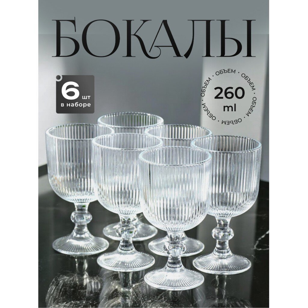 Каждый бокал рассчитан на 350 мл, выполнен из прессованного стекла с рельефным узором, что делает их прочными и эстетичными.