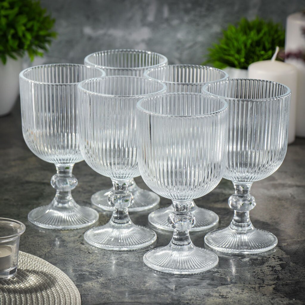 Бокалы для вина Daniks Грани 350 мл, 6 шт: стильный набор для сервировки и подарка. Прессованное стекло, рельефный дизайн, выгодная цена — выбор для ценителей!