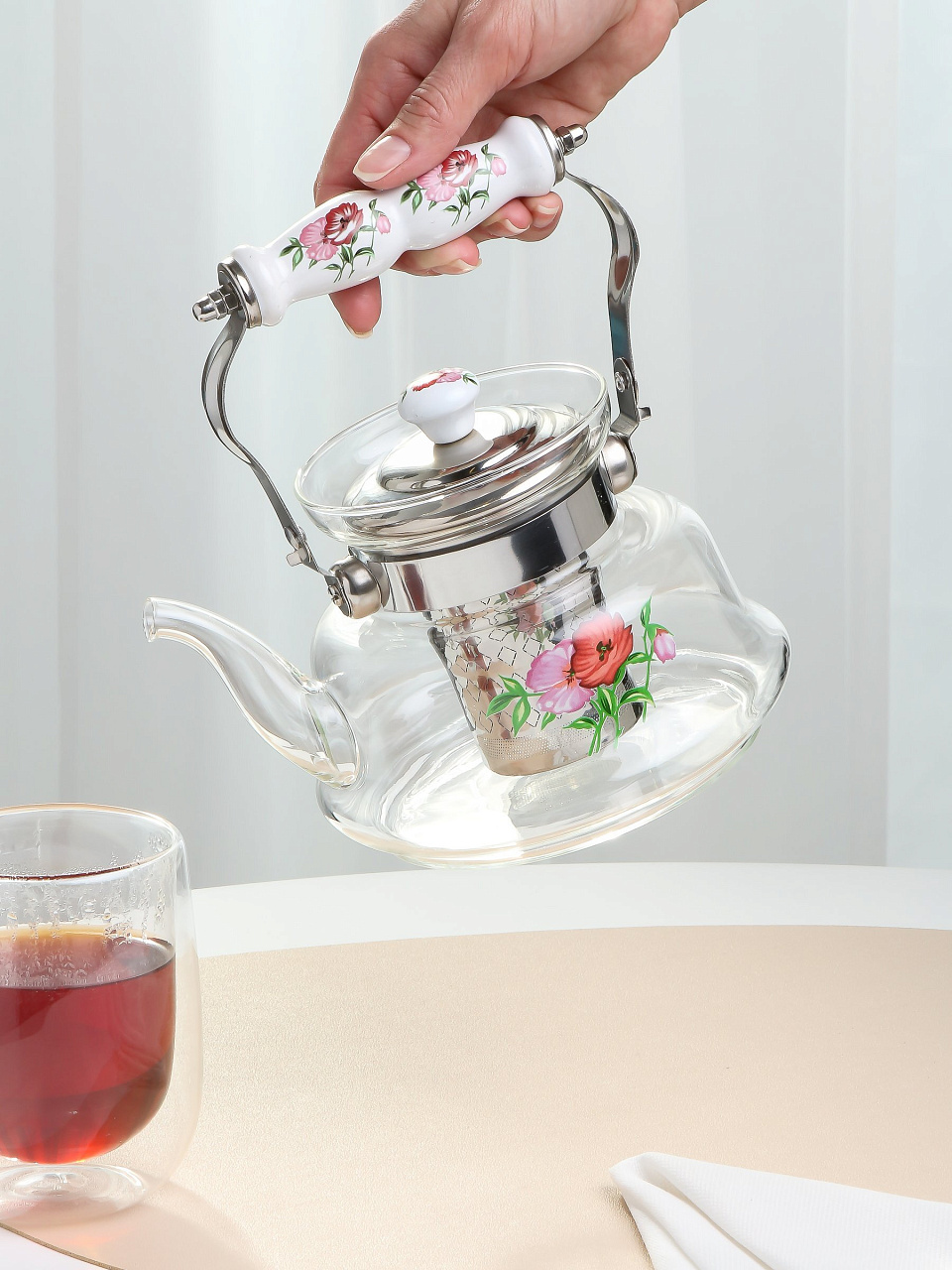 - Прозрачные стенки чайника дают возможность насладиться насыщенным цветом заваренного чая.