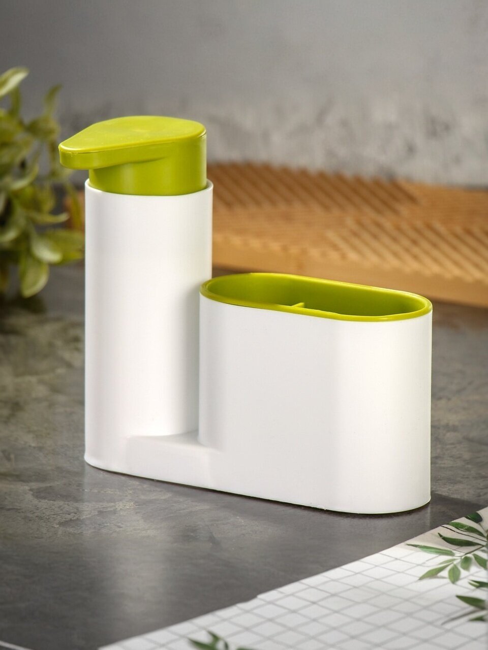 Органайзер для кухни пластик, дозатор для мыла, стакан, белый, Y4-7227