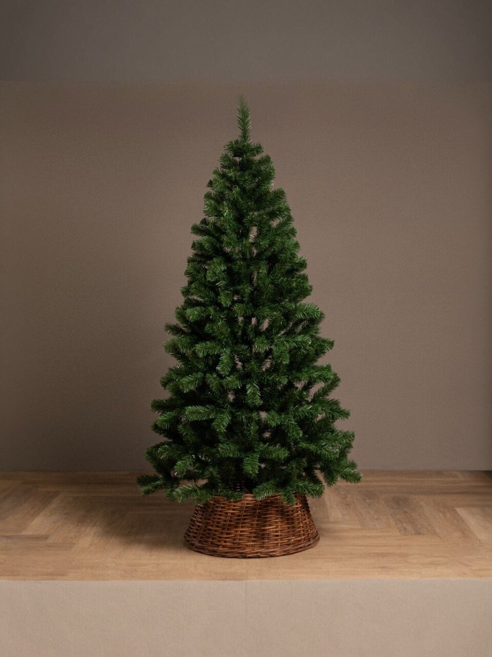 - Максимально реалистичный внешний вид — хвоя из ПВХ-пленки, густые ветви, классическая форма ели