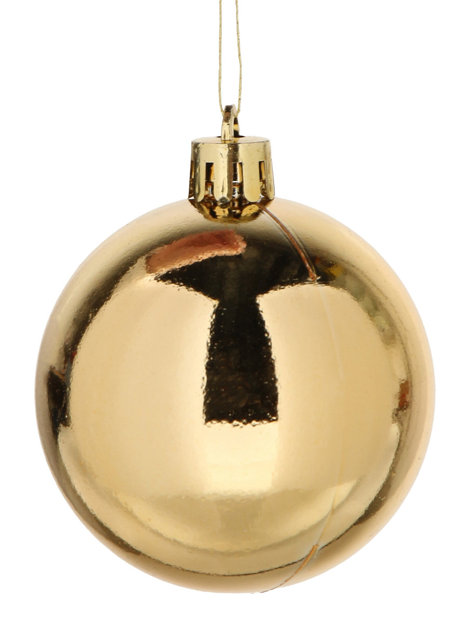 - Универсальный размер и золотое блестящее покрытие: диаметр 6 см, эффектно смотрятся на елке любого типа