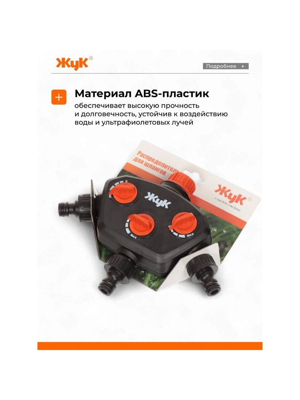 Откройте для себя удобство и эффективность с трехканальным распределителем для шланга от бренда Жук. Этот надежный инструмент станет незаменимым помощником в вашем саду или на даче, обеспечивая оптимальное распределение воды для полива растений. С его помощью вы сможете с легкостью управлять потоком воды, обеспечивая нужное количество влаги для каждой зоны вашего участка. Простота использования и надежность делают этот распределитель идеальным выбором для любого садовода.