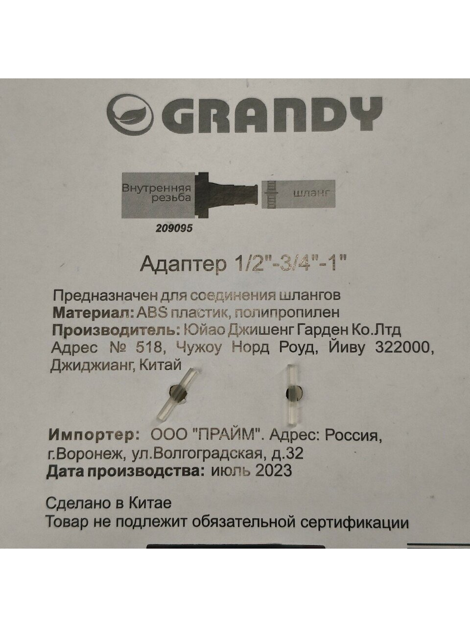 Ищете надежное решение для подключения шланга? Адаптер для шланга 1/2"-3/4" от бренда Grandy - идеальный выбор для вашего сада или участка. Этот адаптер, выполненный из прочного ABS-пластика, обеспечивает надежное соединение благодаря наружной резьбе типа "елочка".