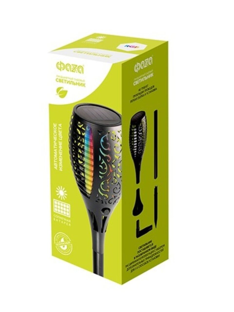 Ландшафтный светильник ФАZА SLR-S11-RGB – современное решение для стильного и функционального освещения сада, дачи или приусадебного участка. Благодаря встроенным 33 светодиодам и поддержке RGB-подсветки, светильник создает эффект живого факела, наполняя пространство атмосферой уюта и безопасности. Установка максимально проста – достаточно воткнуть в грунт, не требуются провода и розетки. Благодаря солнечной батарее и аккумулятору 2/3 AAA Ni-MH 300мАч, светильник полностью автономен и не требует дополнительных расходов на электроэнергию.