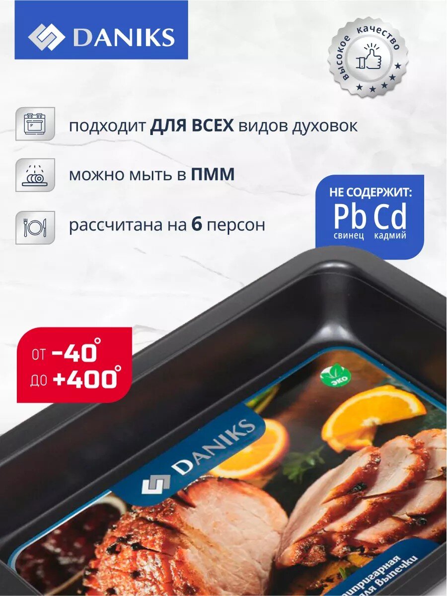 Форма для запекания Daniks 27×37,6 см — идеальный противень из стали с антипригарным покрытием для вкусных блюд без пригорания. Удобно для дома и дачи.