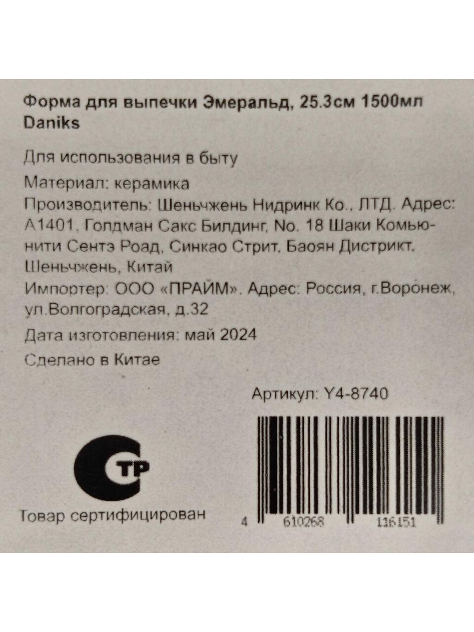 Керамическая форма для выпечки Daniks Эмеральд 1,5 л: идеальный выбор для пирогов, курицы и рыбы. Жаропрочная, стильная, подходит для СВЧ и посудомойки.