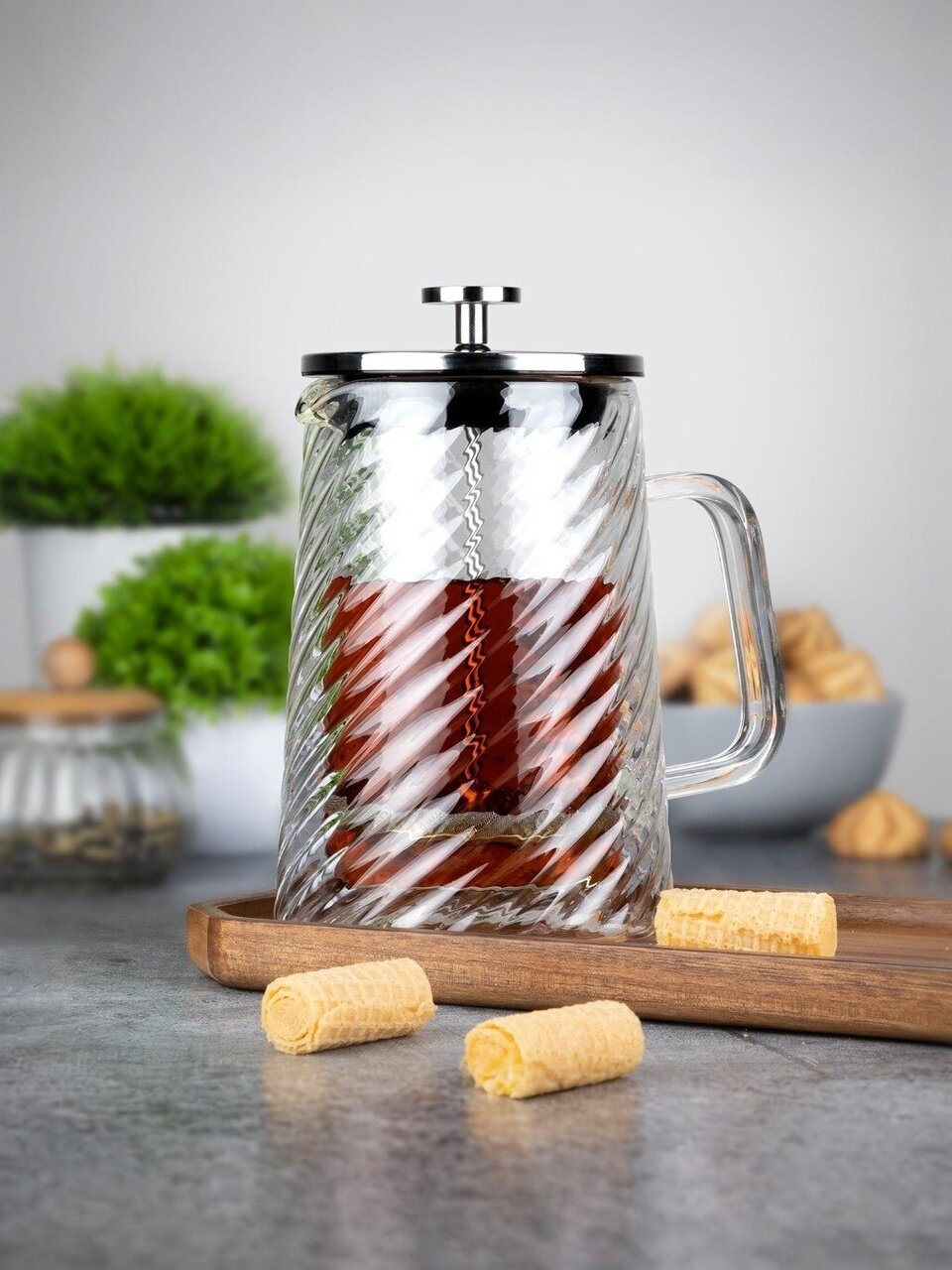 Френч-пресс Taller TR-32343 - это не просто инструмент для приготовления напитков, а возможность насладиться каждым мгновением, проведенным за чашкой ароматного чая или кофе. Выгода от его покупки заключается в том, что он позволяет наслаждаться качественными напитками в домашних условиях, экономя время и деньги на походы в кафе. Этот френч-пресс станет вашим надежным спутником в создании уютных и теплых моментов каждый день.