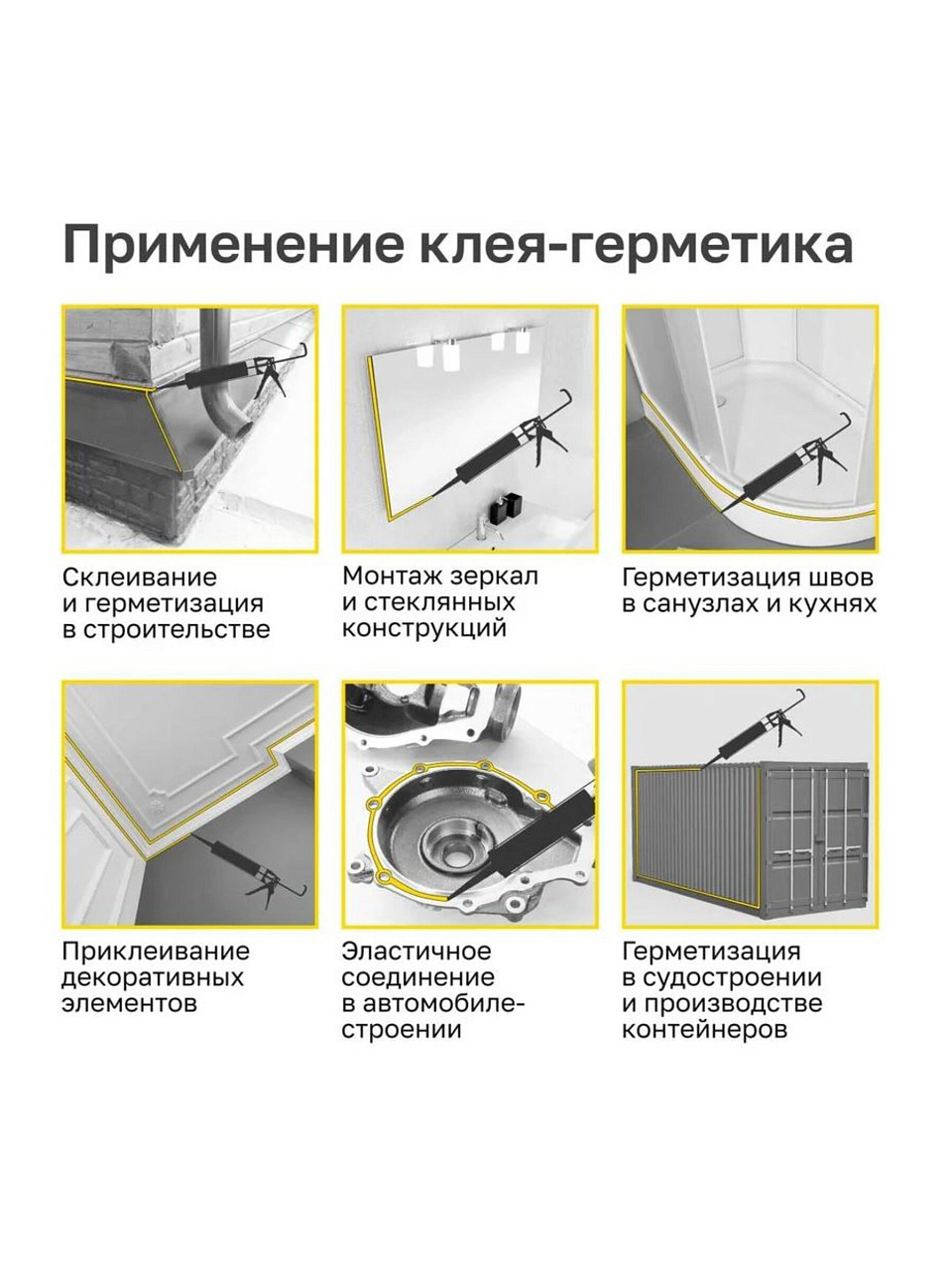 Да, клей-герметик химстойкий, влагостойкий и эластичный — отлично подходит для влажных помещений, швов между плиткой, герметизации раковин, ванн, окон и фасадов.