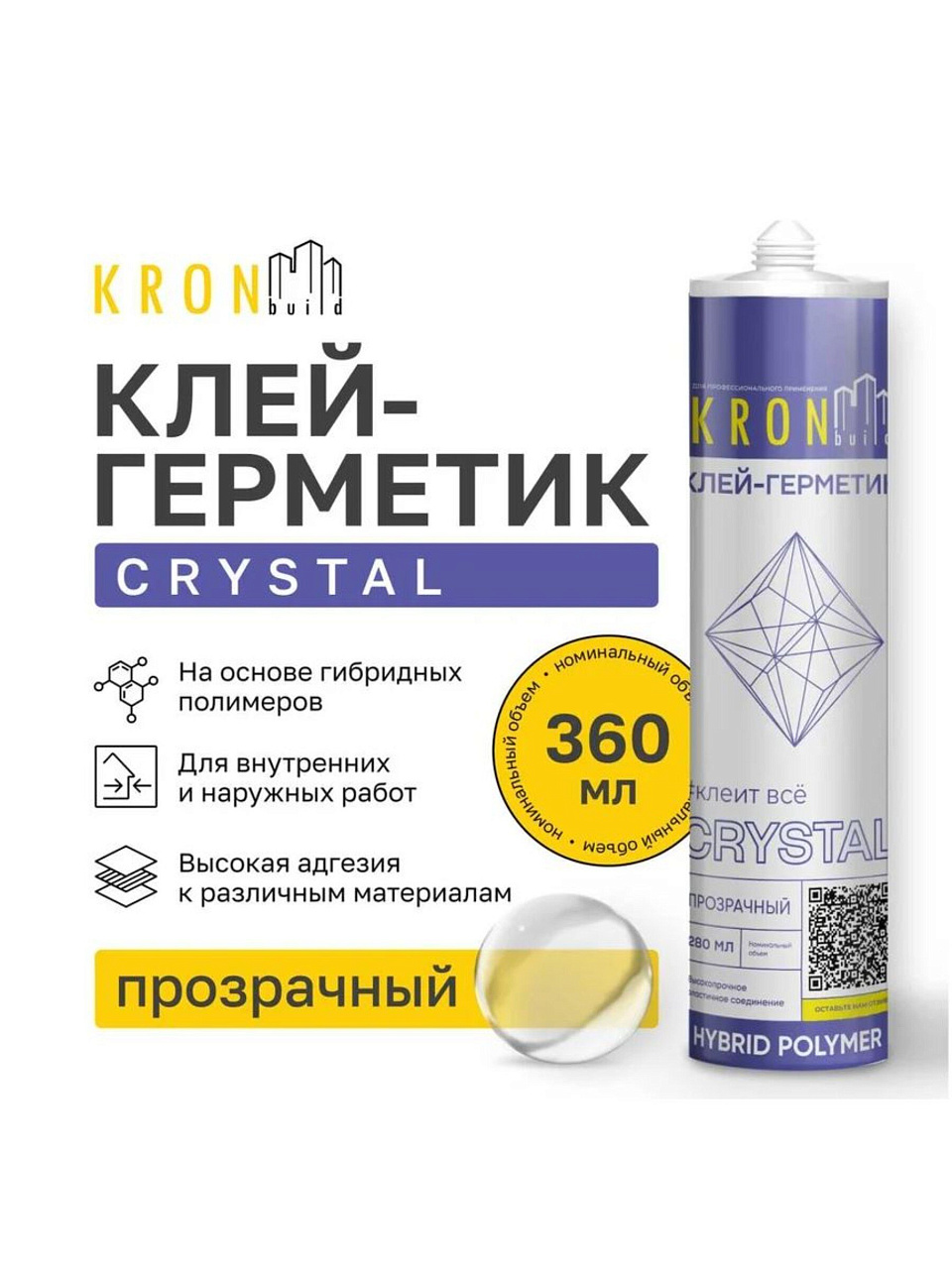 Прозрачный клей-герметик Kronbuild Crystal 280 мл — идеальный выбор для ремонта и отделки: универсальное решение для дерева, стекла, пластика и других материалов.
