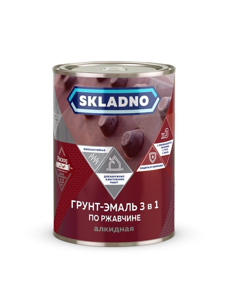 Грунт-эмаль Skladno - это инновационное решение для защиты металла от коррозии и придания ему эстетичного вида. Этот продукт объединяет в себе три функции: нейтрализацию ржавчины, грунтование поверхности и создание атмосферостойкого эмалевого покрытия. Благодаря этому, вам больше не придется приобретать и использовать отдельные продукты для каждой стадии обработки металла.