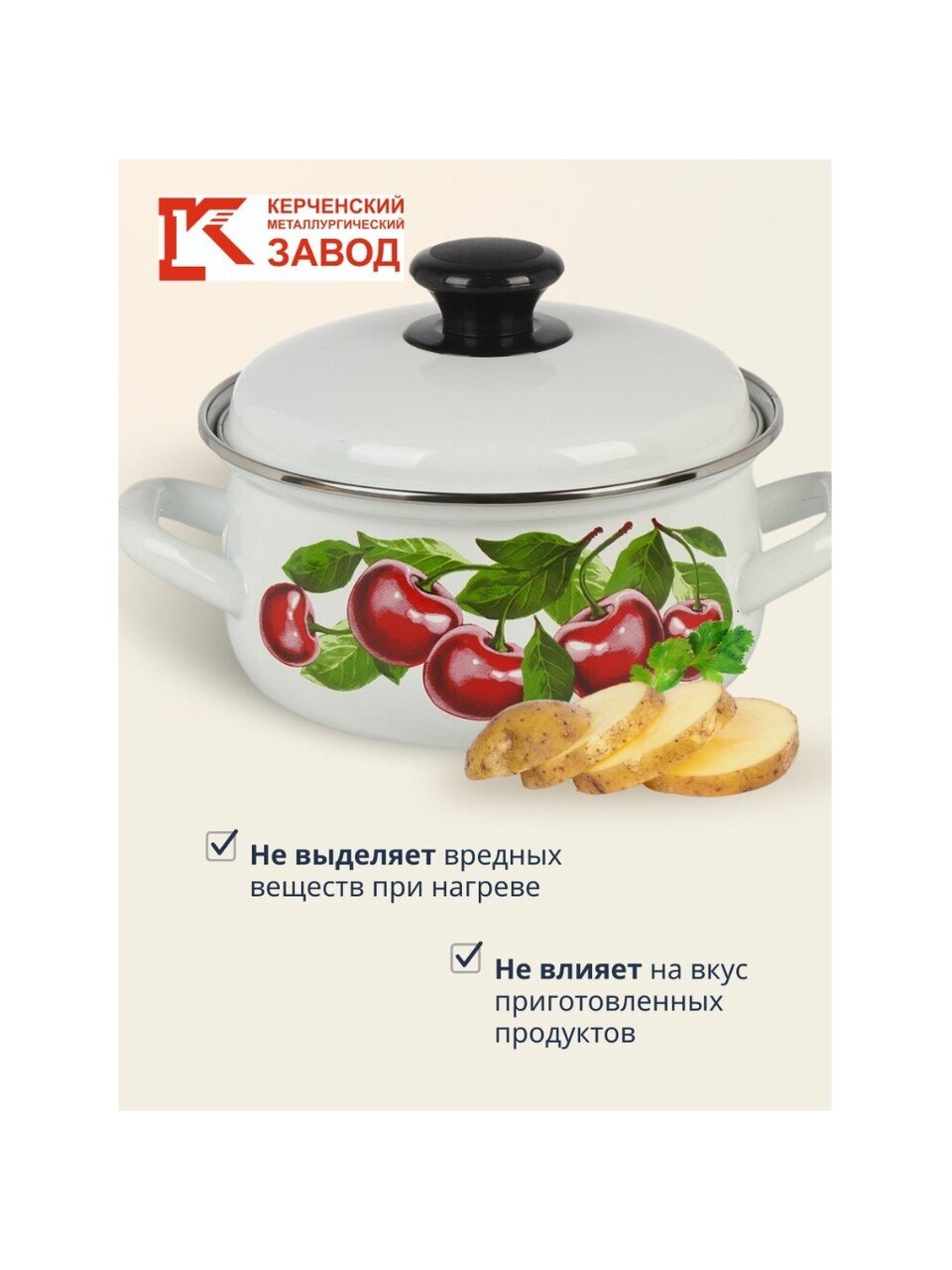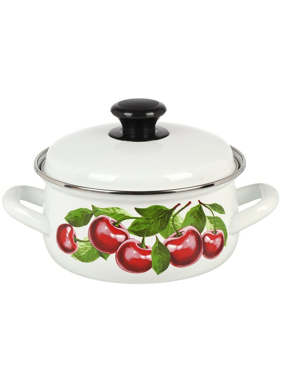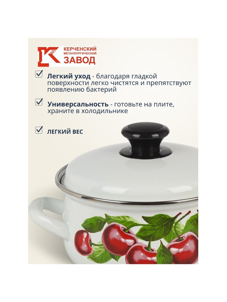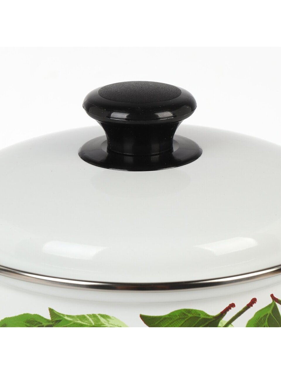 Кастрюля эмалированная сталь, 1.5 л, крышка сталь, сферический, Керченский металлургический завод, Вишневый сад, 61904-082/6, белая