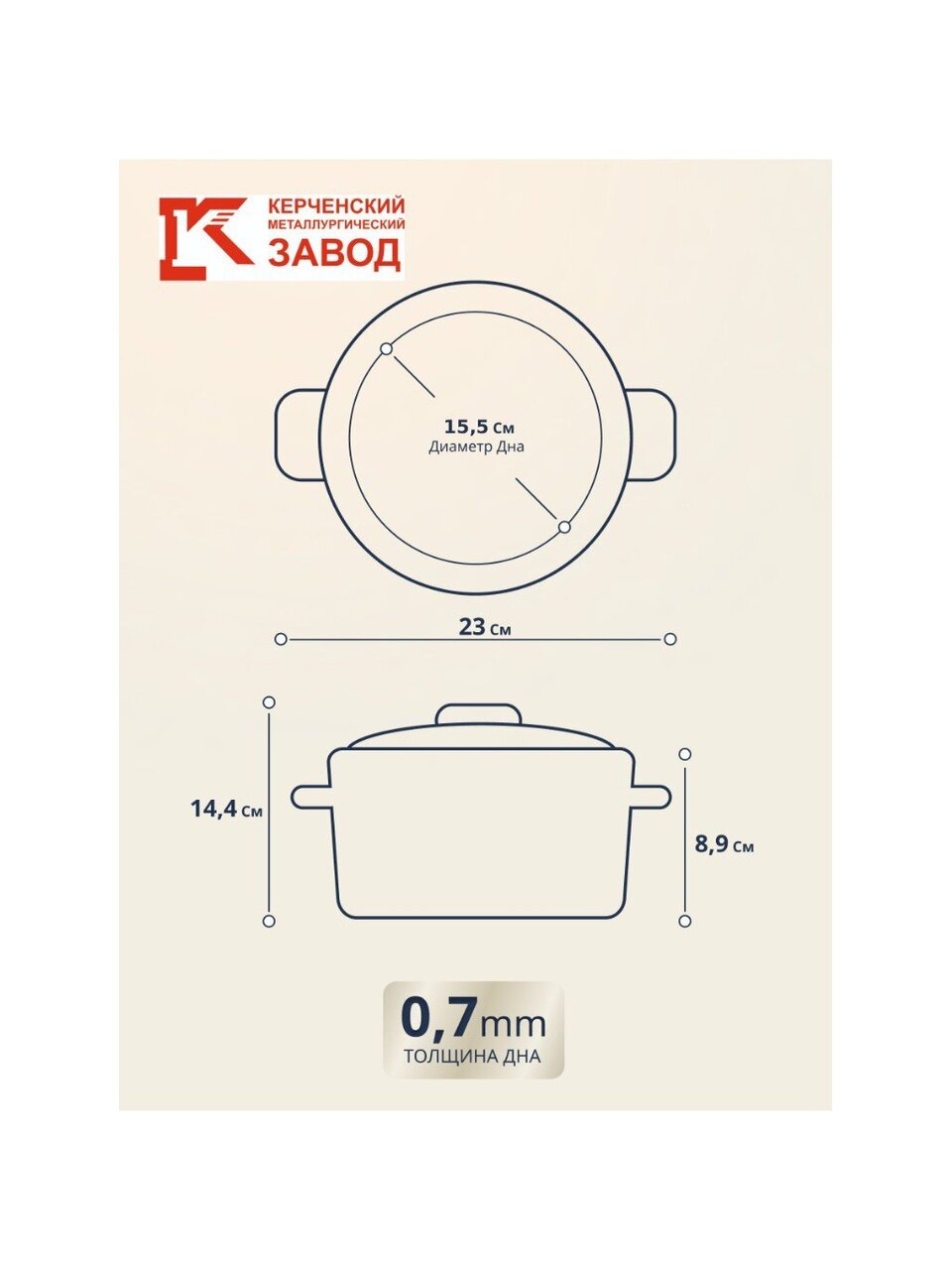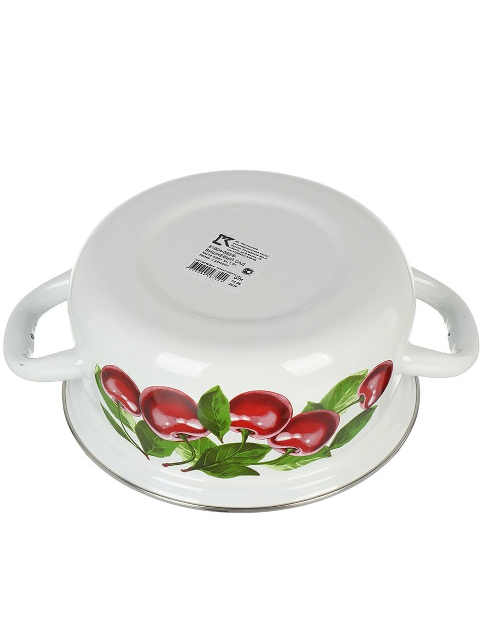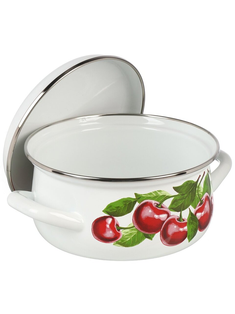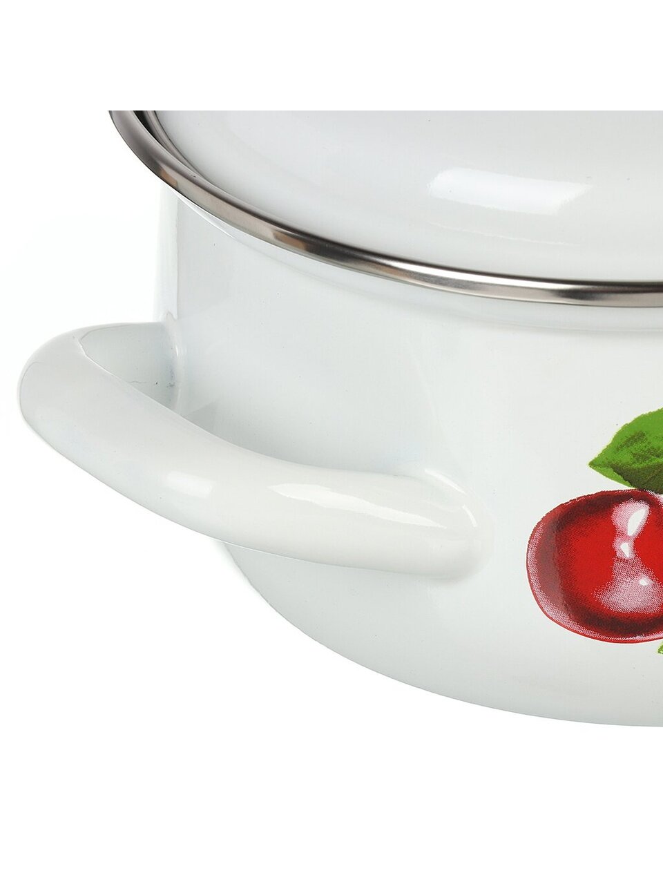 Кастрюля эмалированная сталь, 1.5 л, крышка сталь, сферический, Керченский металлургический завод, Вишневый сад, 61904-082/6, белая