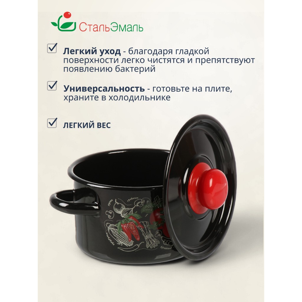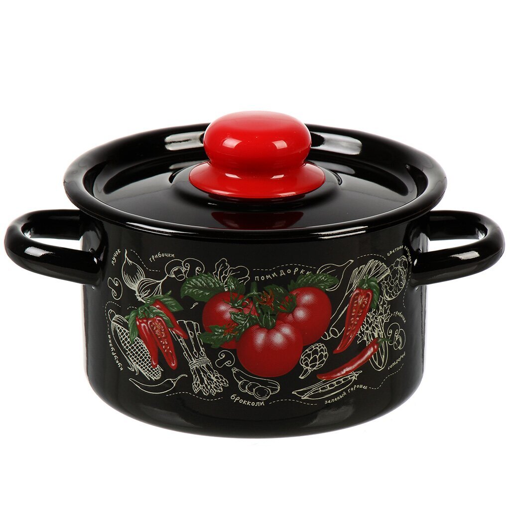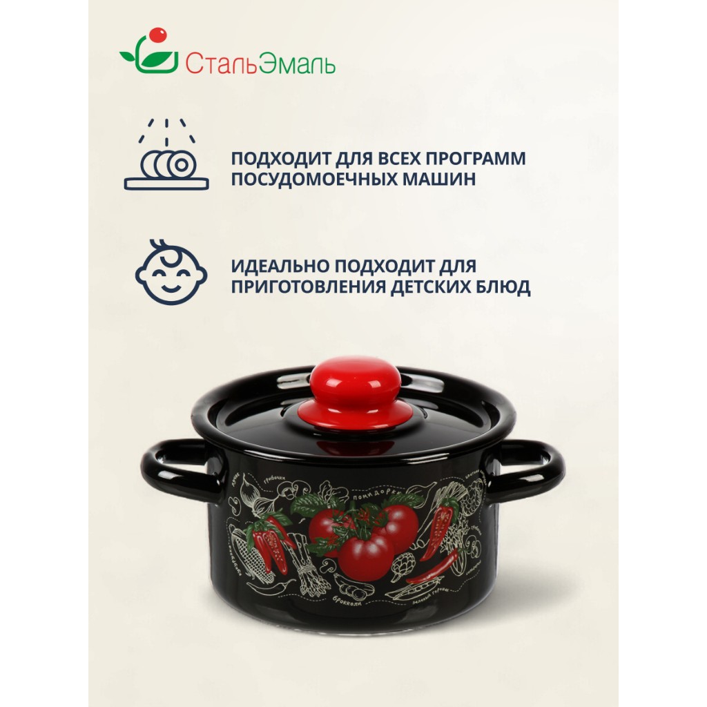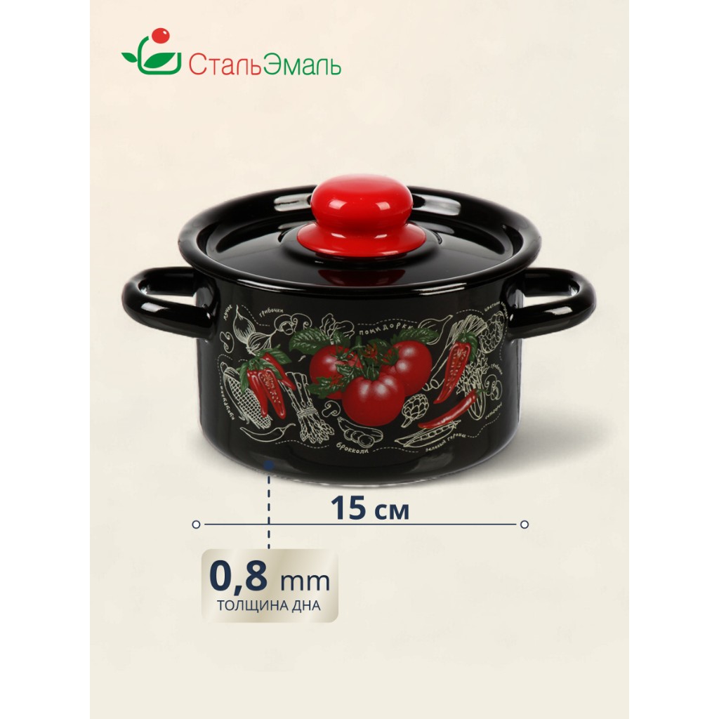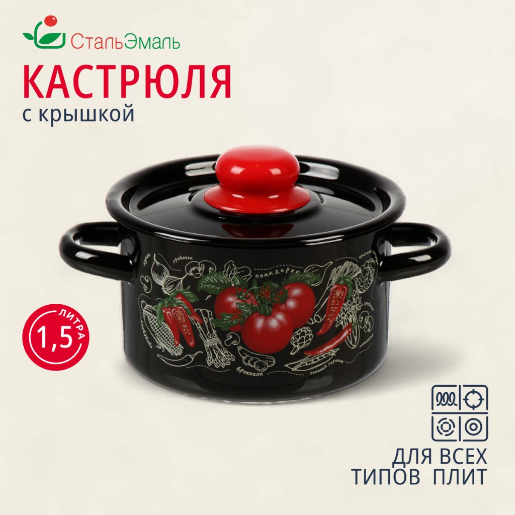Эмалированная кастрюля СтальЭмаль «Помидорки», 1.5 л: долговечная сталь, подходит для индукции, идеальна для каш и пельменей дома и на даче.