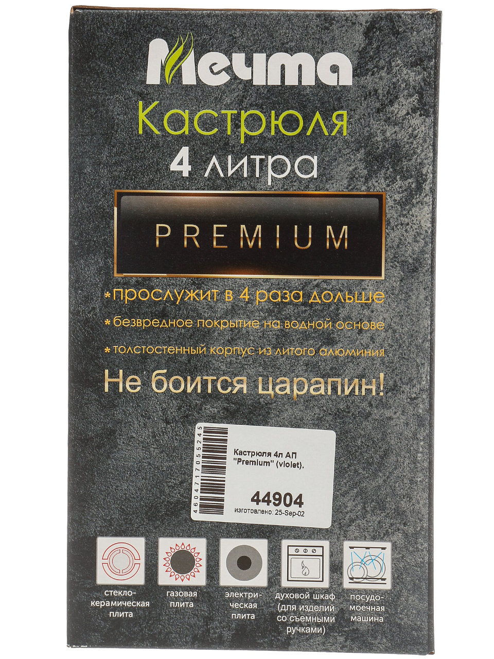 Кастрюля 4 л с антипригарным покрытием и стеклянной крышкой Мечта Premium violet — решение для вкусных и быстрых домашних обедов без хлопот и пригорания.