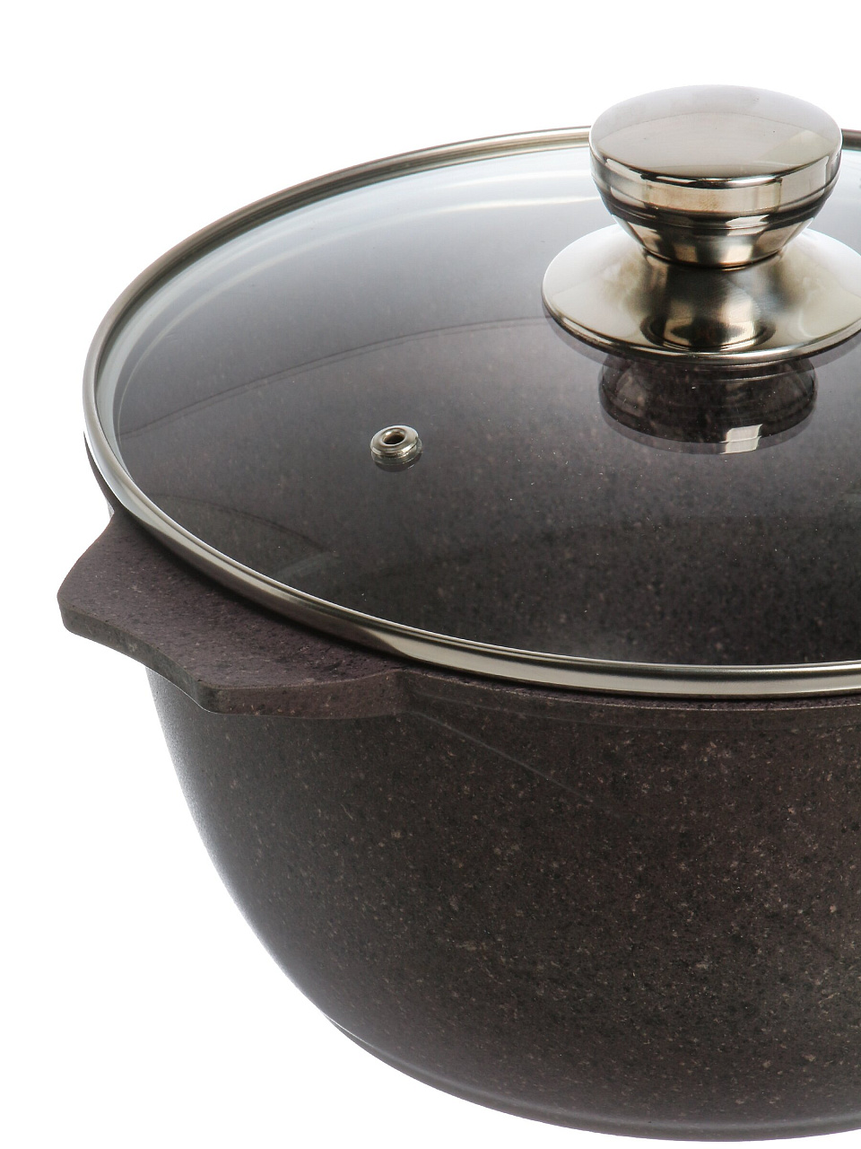 Часто спрашивают: «Как выбрать кастрюлю для плиты с антипригарным покрытием?» — этот вариант совместим с большинством типов плит (кроме индукционных). Благодаря объёму 4 л кастрюля подойдёт для семьи из 3-5 человек, а прочная стеклянная крышка позволяет контролировать процесс приготовления без потери тепла. В сравнении с обычными эмалированными или стальными аналогами, алюминиевая кастрюля легче по весу, быстрее прогревается и не требует замачивания для очистки.