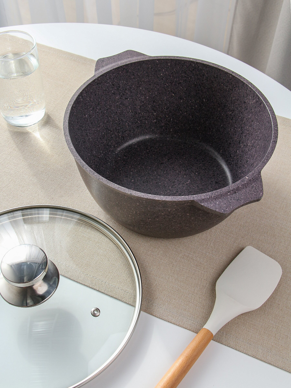 Если вы ищете, какую кастрюлю купить для дачи или в подарок — обратите внимание на эту модель: она сочетает стиль, технологичность и практичность. Антипригарное покрытие обеспечивает лёгкое мытьё, а современный дизайн делает кастрюлю отличным выбором для любого интерьера.