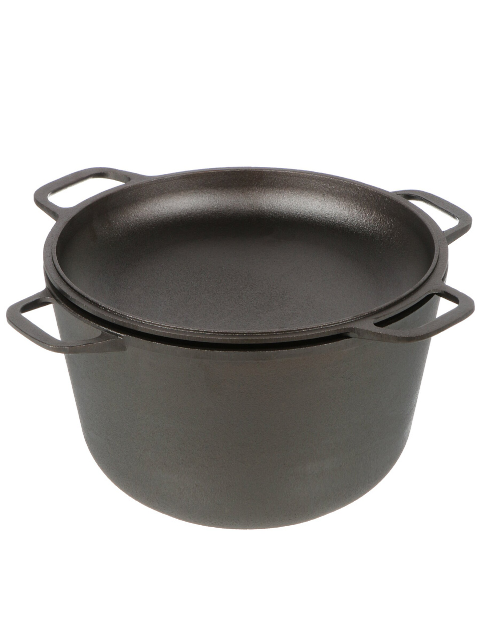 Чугунная кастрюля Гардарика 6 л с крышкой-сковородой: идеальный выбор для плова, тушения и запекания на любой плите — долговечность, вкус, универсальность.