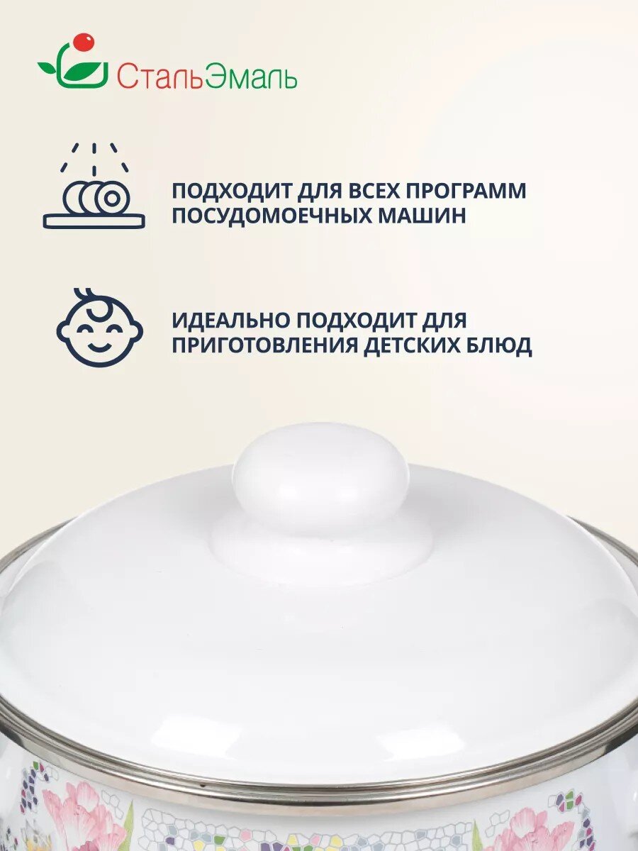 Эмалированная кастрюля 2 л СтальЭмаль «Мозаика белоснежная» — идеальный выбор для дома и дачи: подходит для индукционных плит, долговечна, легко мыть.