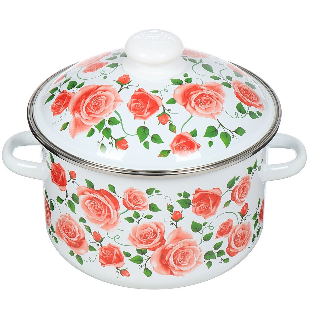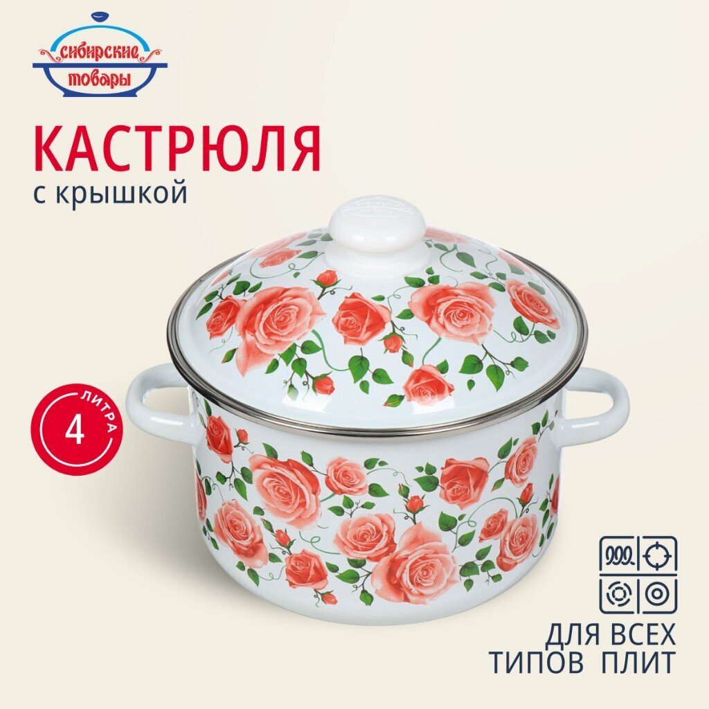 Кастрюля эмалированная сталь 4 л с крышкой для индукции — стиль «Роза плетистая» от бренда «Сибирские товары»: идеальное решение для кухни и дачи, долговечность и универсальность.