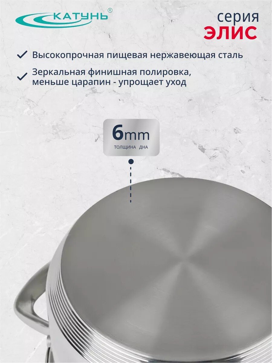 Закажите кастрюлю нержавеющую Катунь Элис с гарантией 12 месяцев и быстрой доставкой — инвестируйте в комфорт, долговечность и стиль вашей кухни уже сегодня.