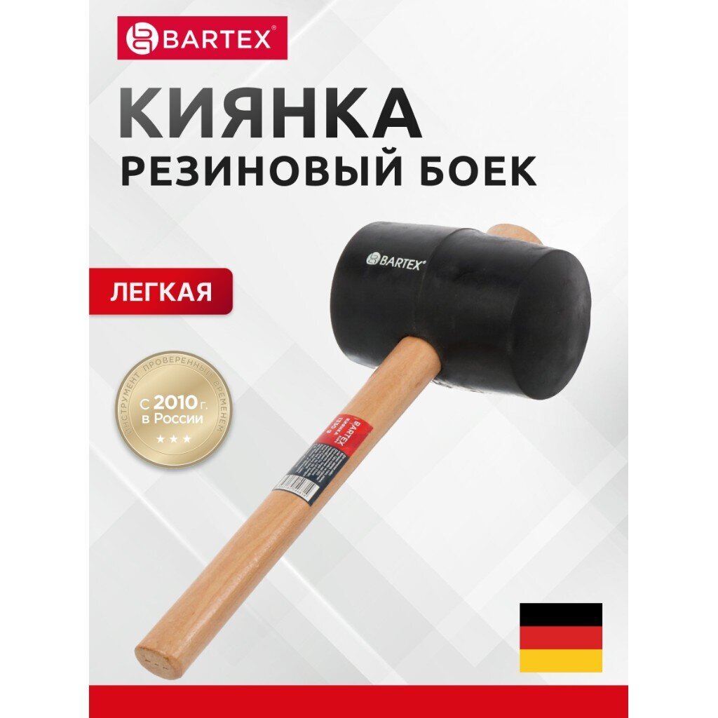 Киянка - распространенная разновидность ручного ударного инструмента, состоящая из длинной ручки и ударной головки. Деревянная рукоятка киянки Bartex покрыта лаком и защищена от рассыхания. Ударная головка киянки выполнена из черной резины.