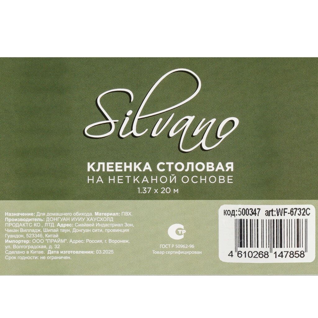 Вы можете приобрести «Клеенка Silvano, 1.37х20 м, ПВХ на нетканой основе, WF-6732C» и другие товары в нашем интернет-магазине в Липецке по низким ценам и с бесплатным самовывозом.