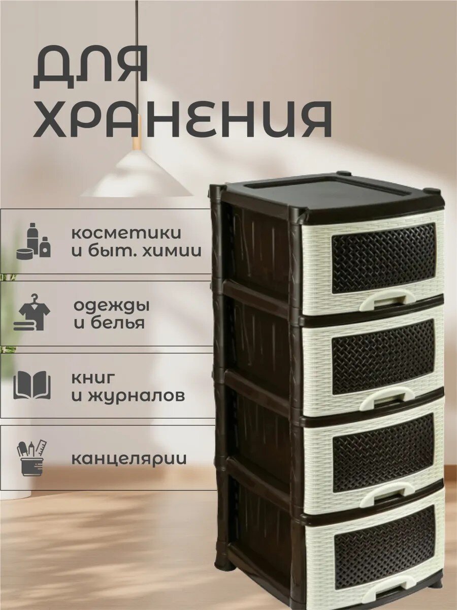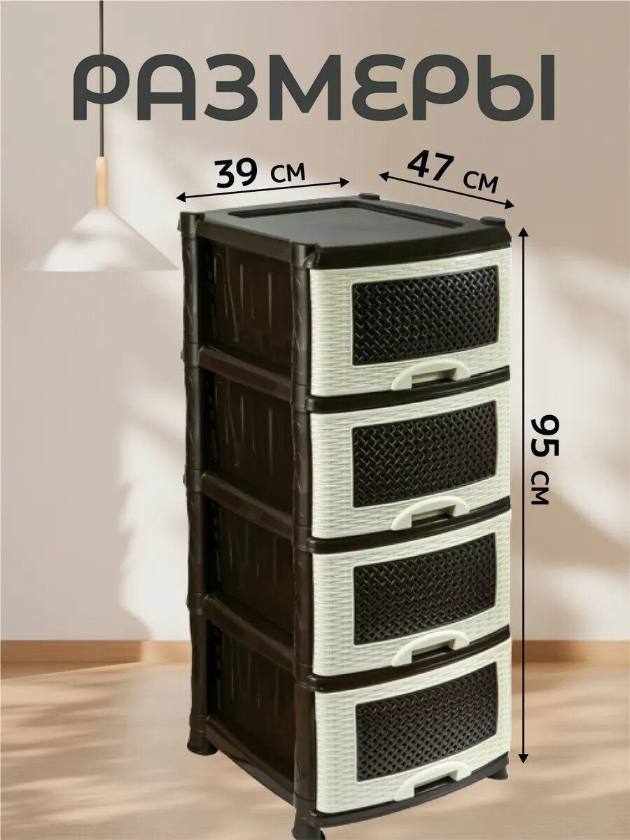 Вы можете приобрести «Комод 4 ящика, Плетенка, 39х47х95 см, бежево-коричневый, 0354/035401, Violet» и другие товары в нашем интернет-магазине в Санкт-Петербургe по низким ценам и с бесплатным самовывозом.