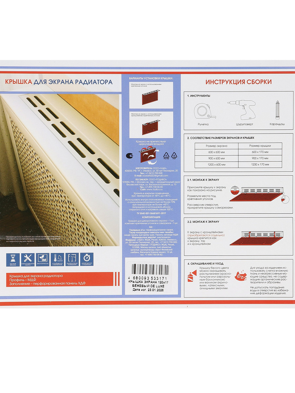 Крышка для экрана радиатора МДФ 1200х170 мм бежевый DE LUXE: стиль, защита и уют для вашего дома с выгодой.