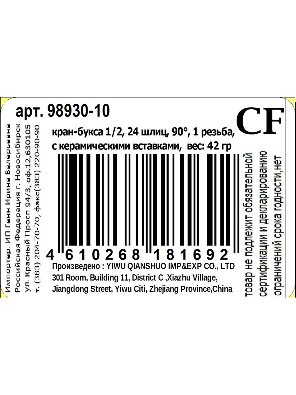 Кран-букса 1/2 '', 24 шлиц, 90°, 1 резьба, с керамической вставкой ComfortFactor 98930-10 — оптимальное решение для ремонта и замены сантехнических элементов в доме или на даче. Надежная конструкция и керамическая вставка обеспечивают плавное и долговечное функционирование смесителя. Компактный вес 42 г и индивидуальная упаковка делают монтаж простым и удобным.