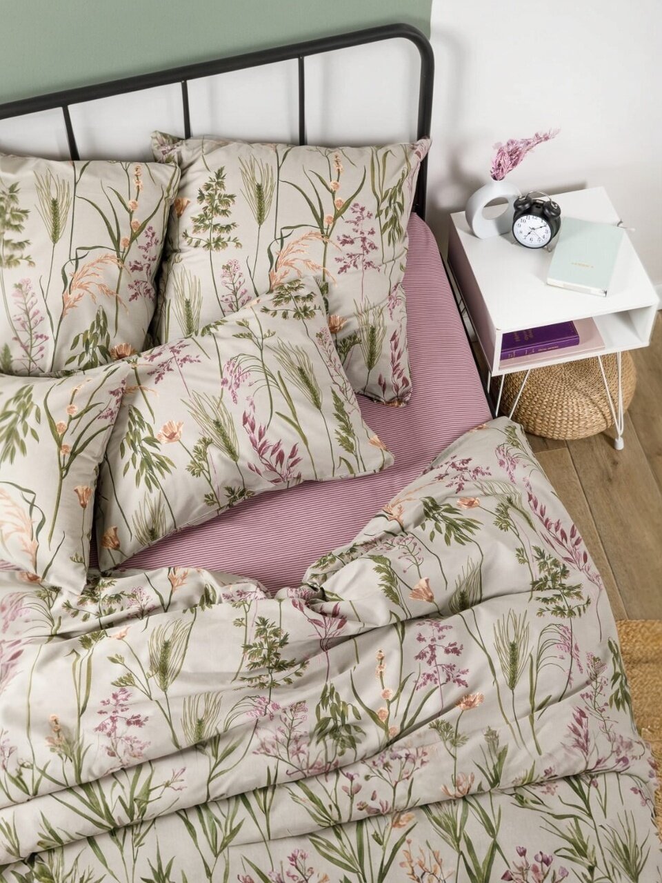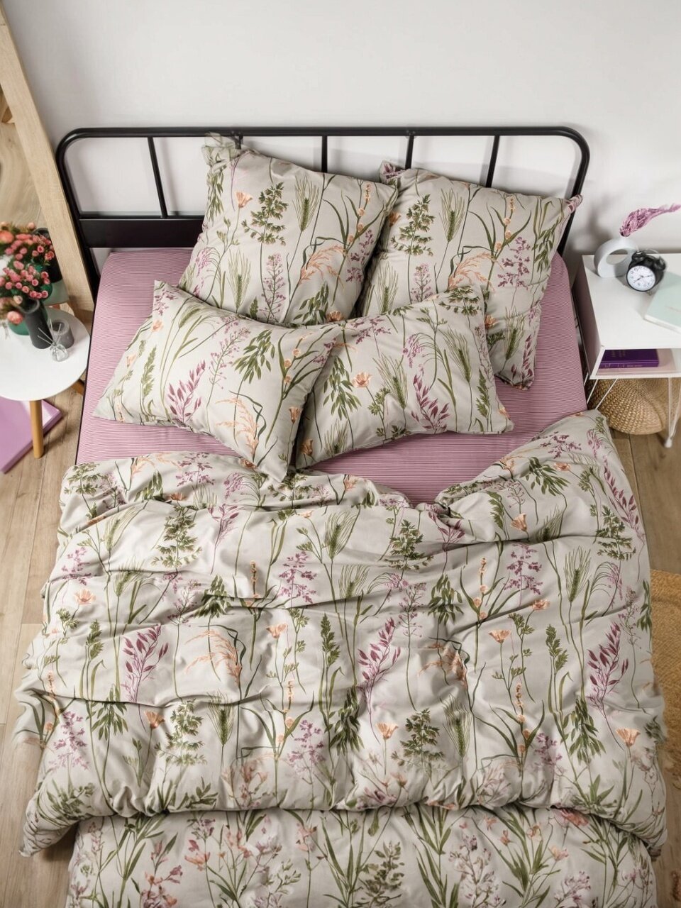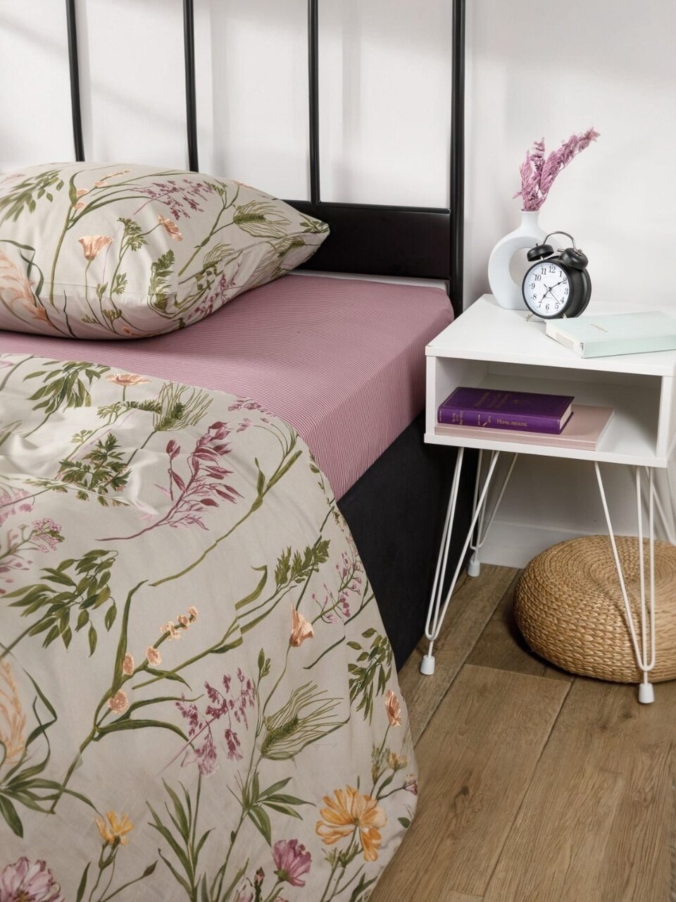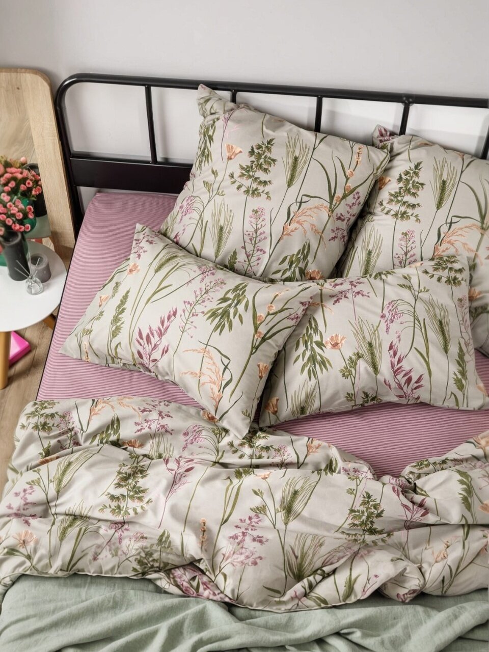 - Универсальный размер: простыня 145×215 см, 2 наволочки 70×70 см, пододеяльник 145×215 см — подходит для стандартных 1.5-спальных кроватей