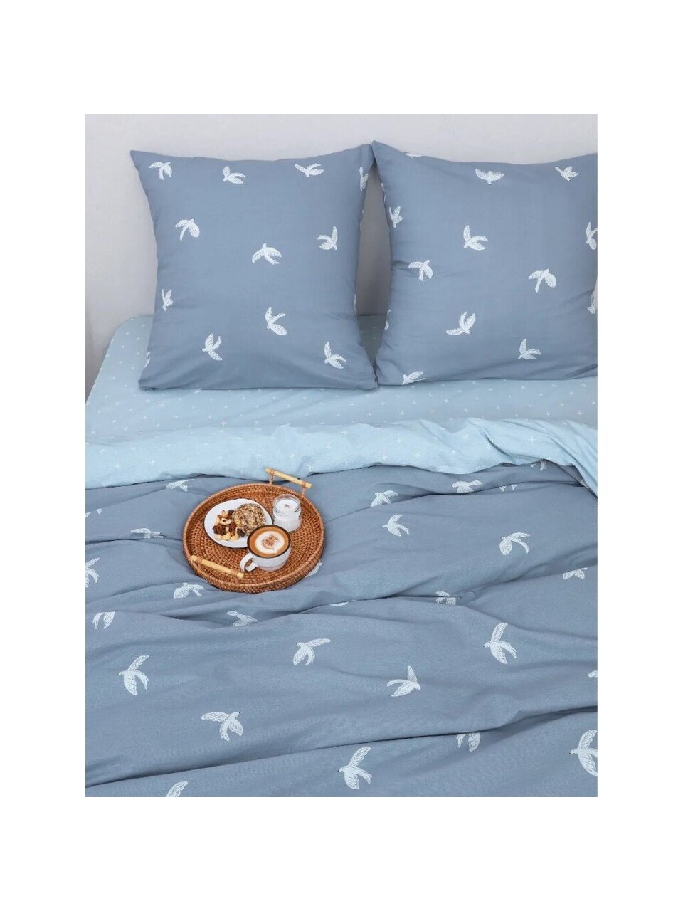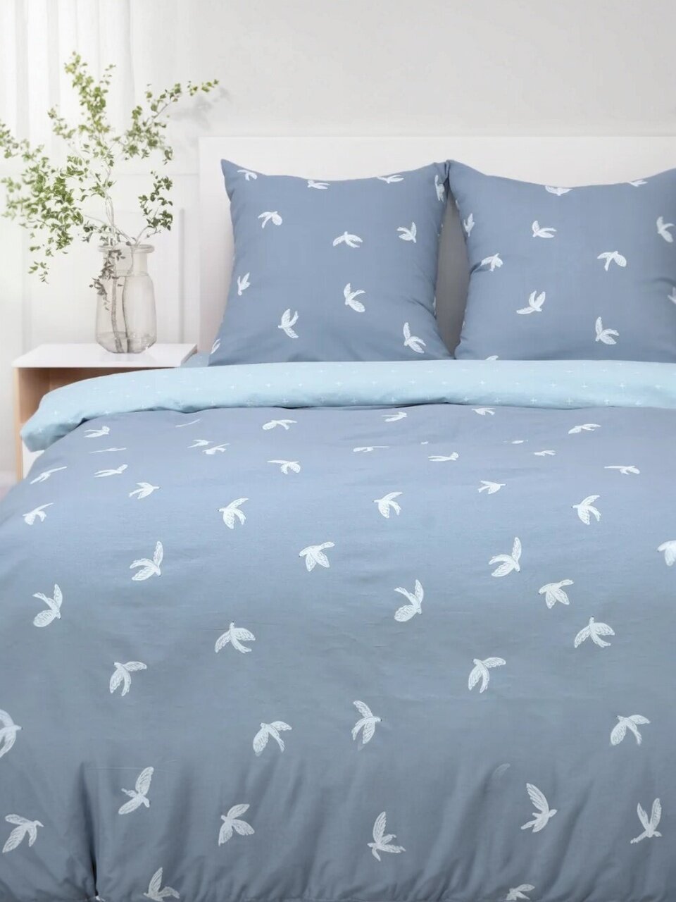 В комплекте простыня размером 200×216 см и пододеяльник 175×215 см — идеальны для стандартных двуспальных кроватей.