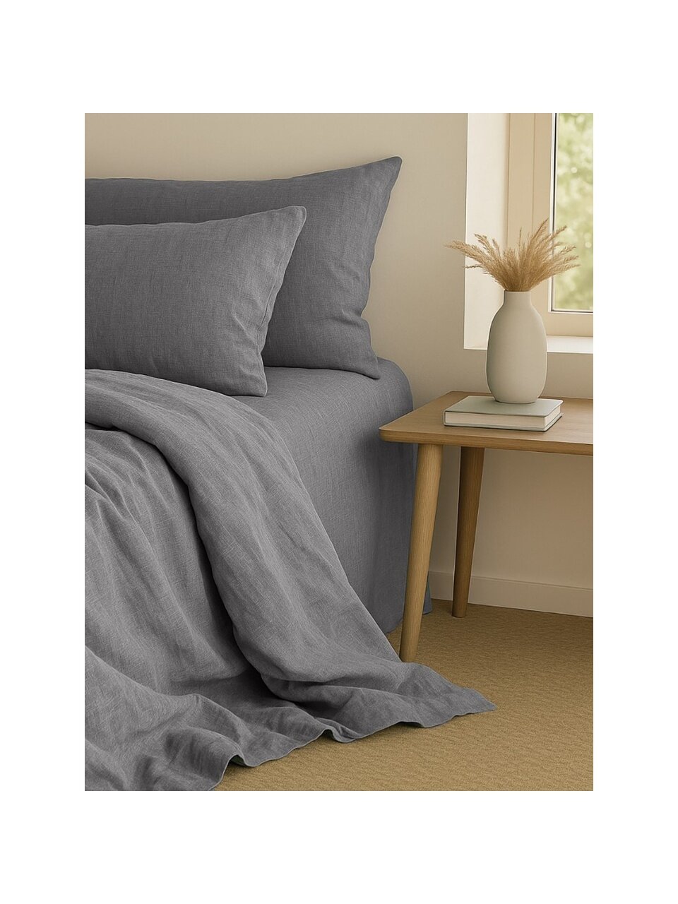 Постельное белье евро, простыня 240х260 см, 2 наволочки 70х70 см, 2 наволочки 50х70 см, пододеяльник 200х220 см, Silvano, вареный хлопок, Графит