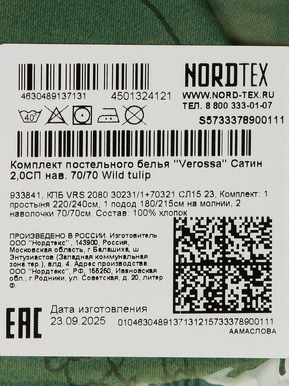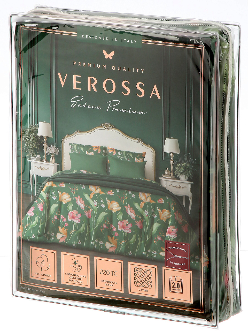 Постельное белье 2-спальный Verossa Wild tulip: сатин премиум-класса, молния, 4 предмета, подарочная упаковка — уют и стиль для вашей спальни.