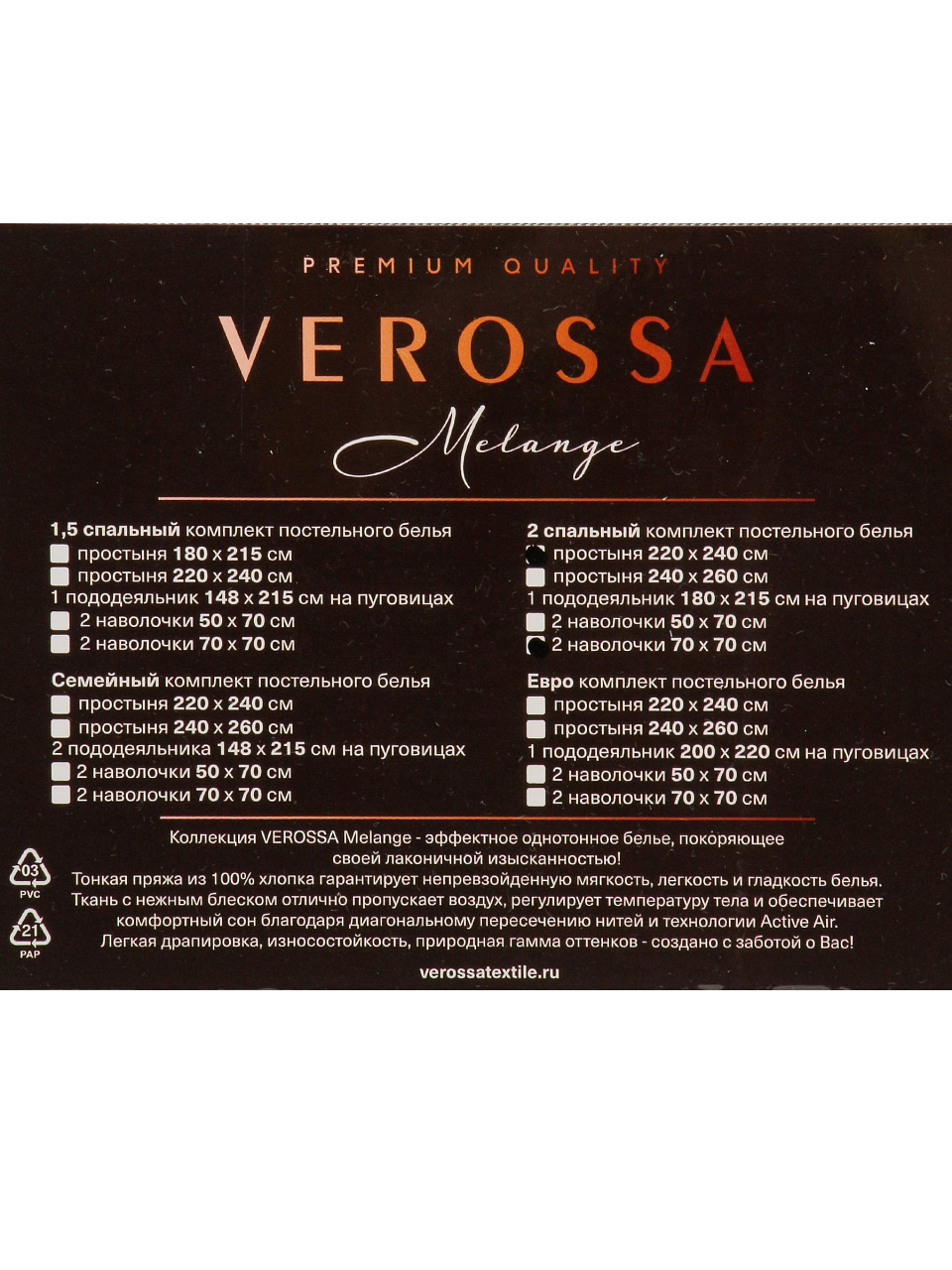 Постельное белье 2-спальное, простыня 220х240 см, 2 наволочки 70х70 см, пододеяльник 180х215 см, Verossa, сатин, Melange, Silver - фото 1 от пользователяПостельное белье 2-спальное, простыня 220х240 см, 2 наволочки 70х70 см, пододеяльник 180х215 см, Verossa, сатин, Melange, Silver - фото 2 от пользователя