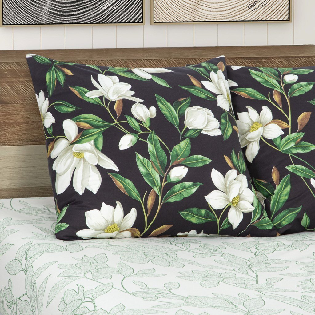 В чудесном китайском саду расцвели белые магнолии. Белоснежные лепестки красивых цветов контрастируют с фоном в темной палитре. Композиция представляет собой гармоничное сплетение трендовых оттенков и элегантного рисунка, символизирующего женскую красоту и изящество.
