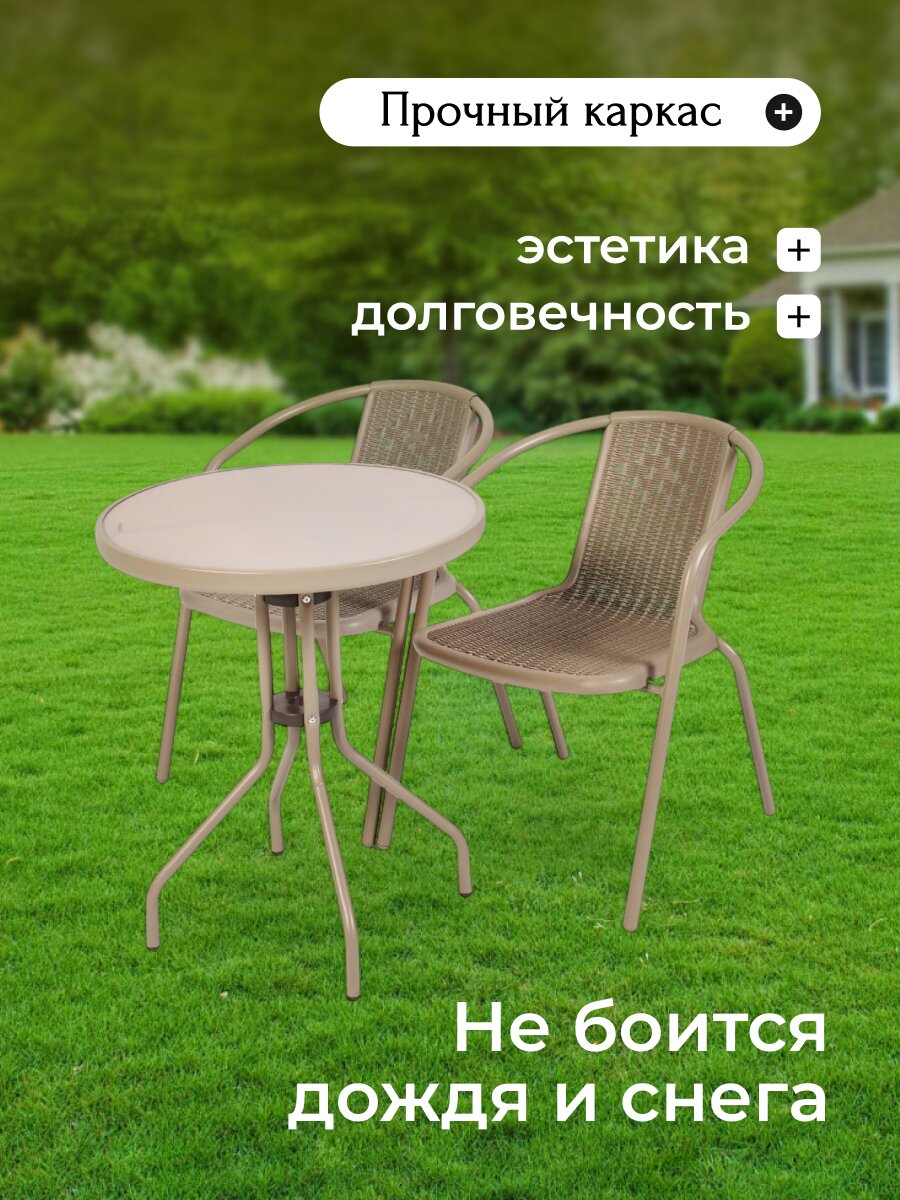 Изысканная садовая мебель Ливадия NEW в бежевом цвете – гармоничное сочетание современного дизайна и функциональности для создания уюта на даче или в загородном доме. Комплект включает стол размером 60х60х71 см и два удобных кресла 43х57х72 см, что делает его идеальным решением для организации комфортного уголка отдыха на свежем воздухе. Привлекательный внешний вид и лаконичные формы позволят легко вписать мебель в любую зону сада, террасы или балкона, подчеркнув индивидуальный стиль пространства.