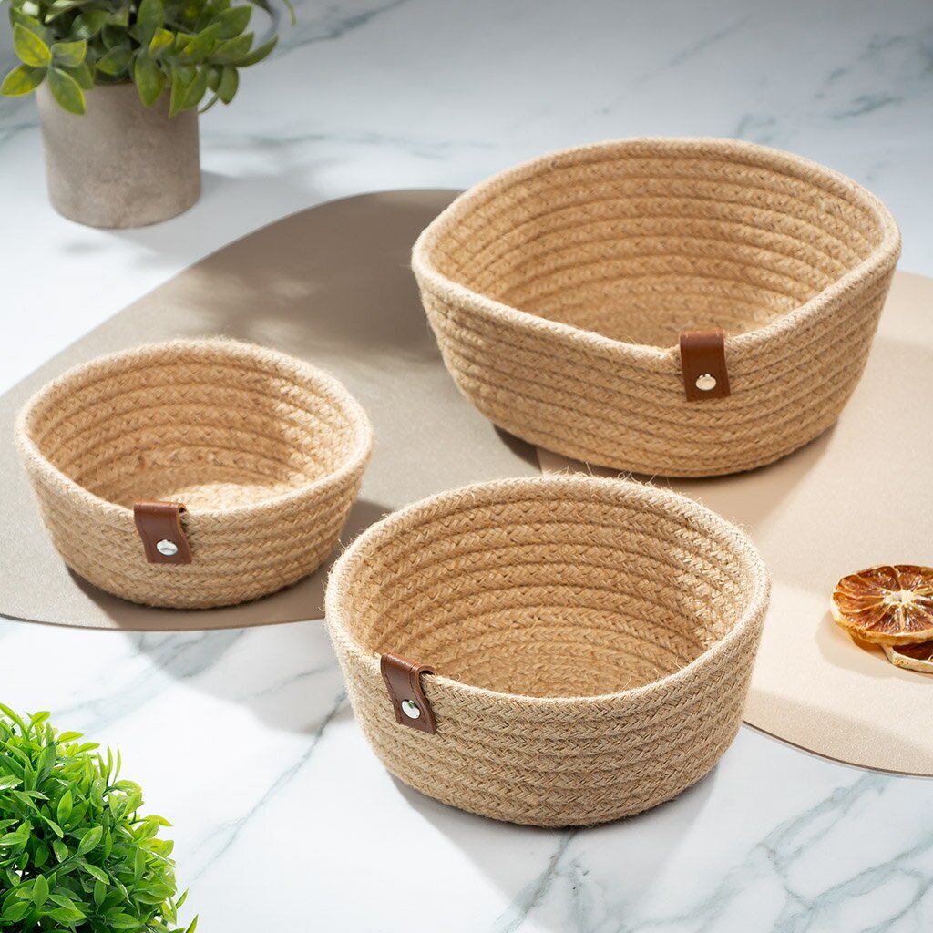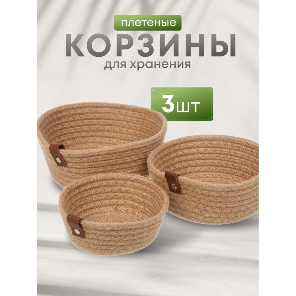 Эти плетеные корзины созданы для тех, кто ценит порядок и эстетику. Бежевый цвет корзин гармонично впишется в любой интерьер, добавляя ему нотку уюта и элегантности. Несмотря на отсутствие крышек, корзины сохраняют аккуратный вид и обеспечивают легкий доступ к содержимому. Их круглая форма и отсутствие ручек делают их идеальными для размещения в любом уголке вашего дома.