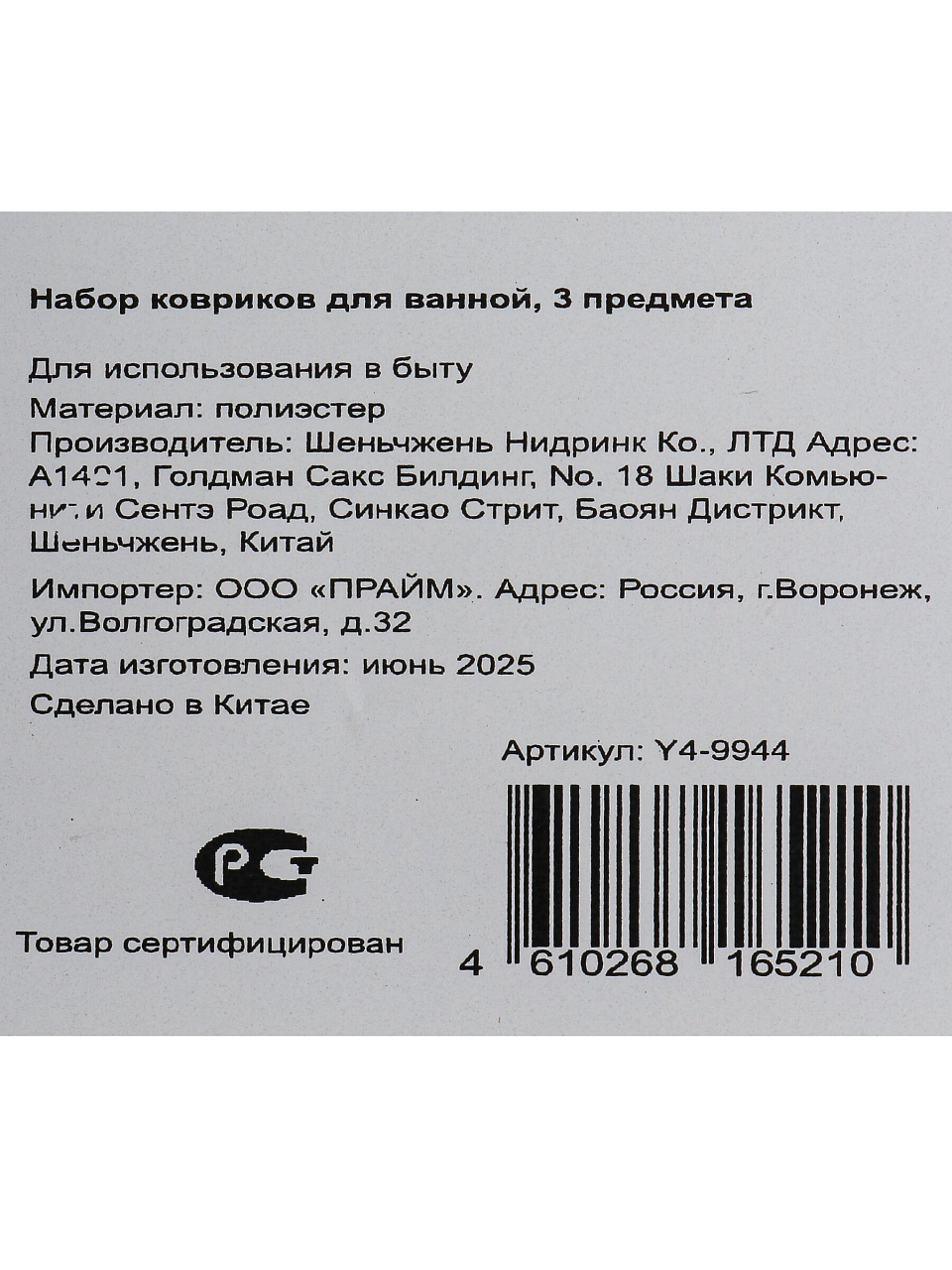 Набор ковриков для ванной, 3 пр, хаки, Y4-9944
