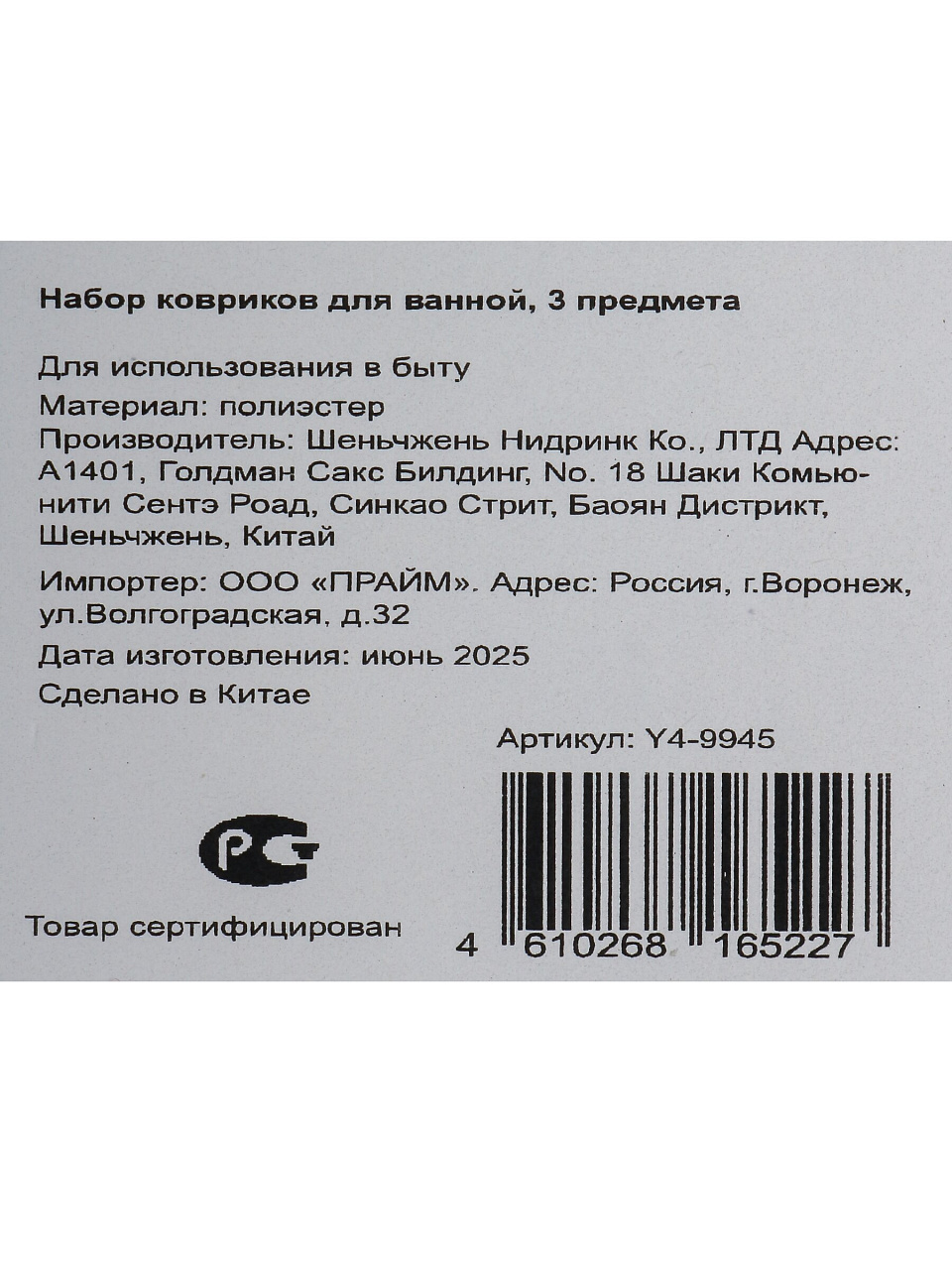 Набор ковриков для ванной, 3 пр, св-серый, Y4-9945