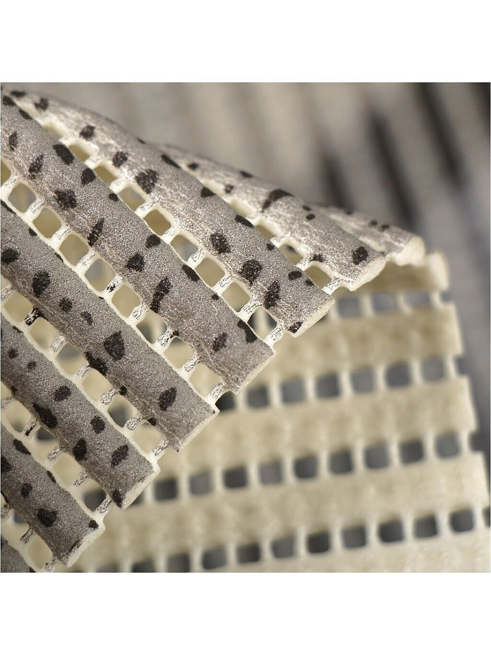 Коврик для ванной Homemat Aquatic 103G — это современное решение для тех, кто ищет, какой коврик выбрать для защиты от скольжения и быстрого высыхания пола. Вспененный ПВХ обеспечивает отличное сцепление с поверхностью, а геометрический рисунок не только добавляет стиль, но и усиливает антискользящий эффект. Благодаря длине 15 метров вы можете купить недорого коврик для ванной и нарезать его под индивидуальные размеры — это удобно для больших ванных комнат, душевых, бассейнов или прихожих.