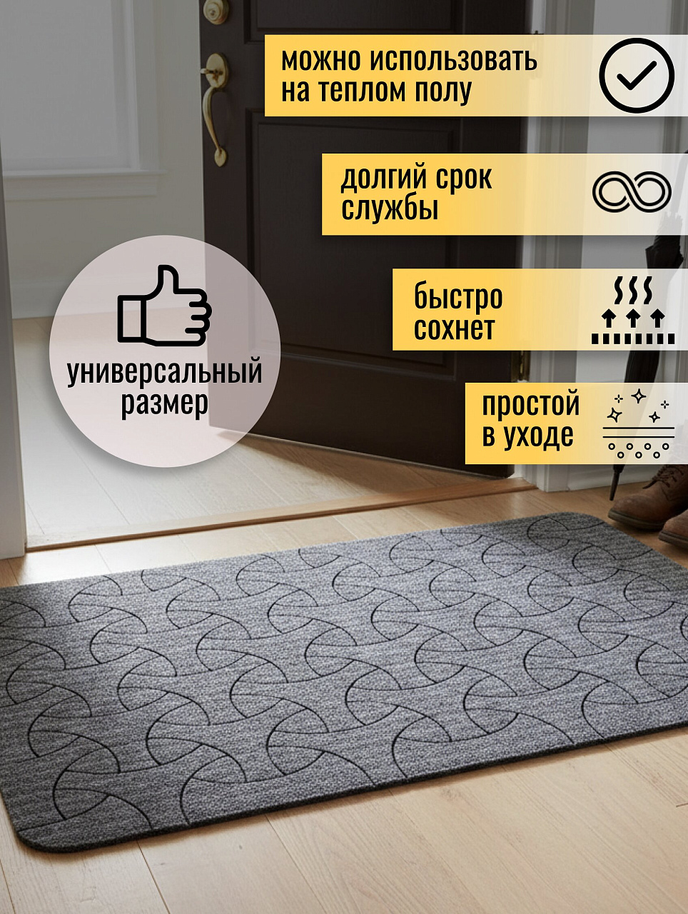 Коврик, размещенный в прихожей или непосредственно перед входом в дом, эффективно справляется с задачей очистки обуви от пыли и различных загрязнений. Его структура позволяет удерживать большую часть грязи, препятствуя ее дальнейшему распространению внутри помещения.