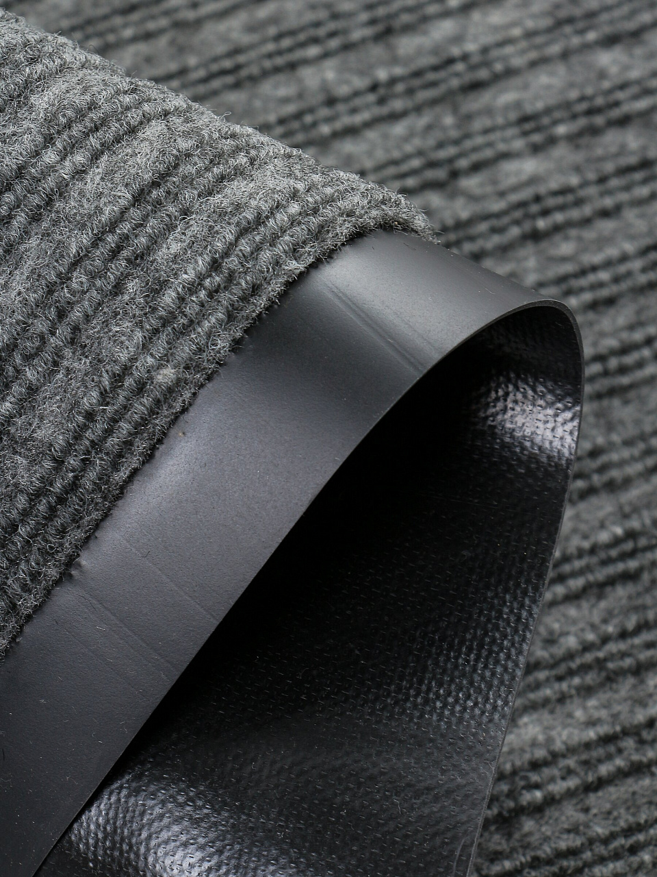 Грязезащитный коврик 50х80 см с ребристым ковролином: защита от грязи и влаги для дома и офиса, долговечность и стильный серый цвет.
