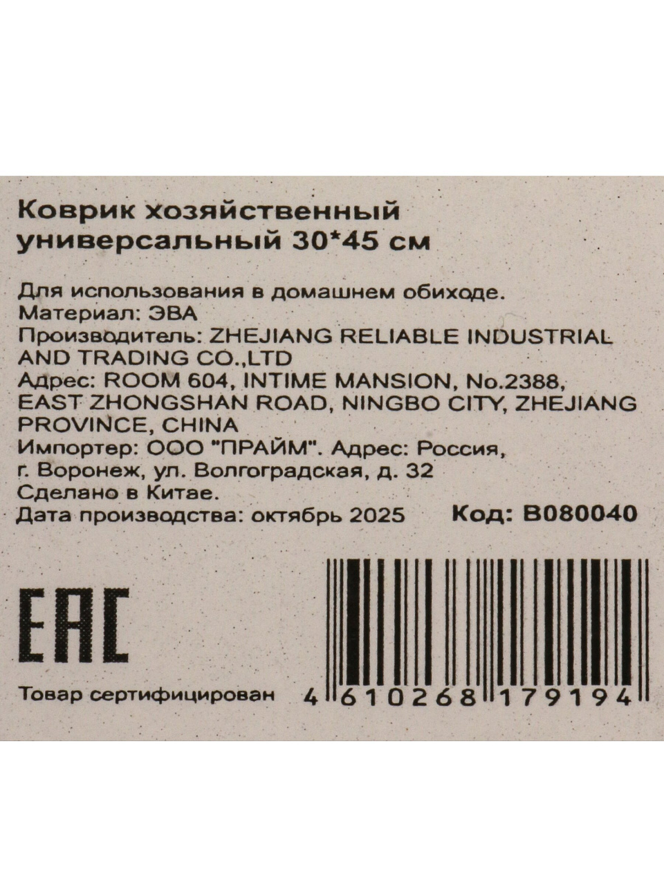 Коврик хозяйственный, 30х45 см, прямоугольный, универсальный, без рисунка, B080040