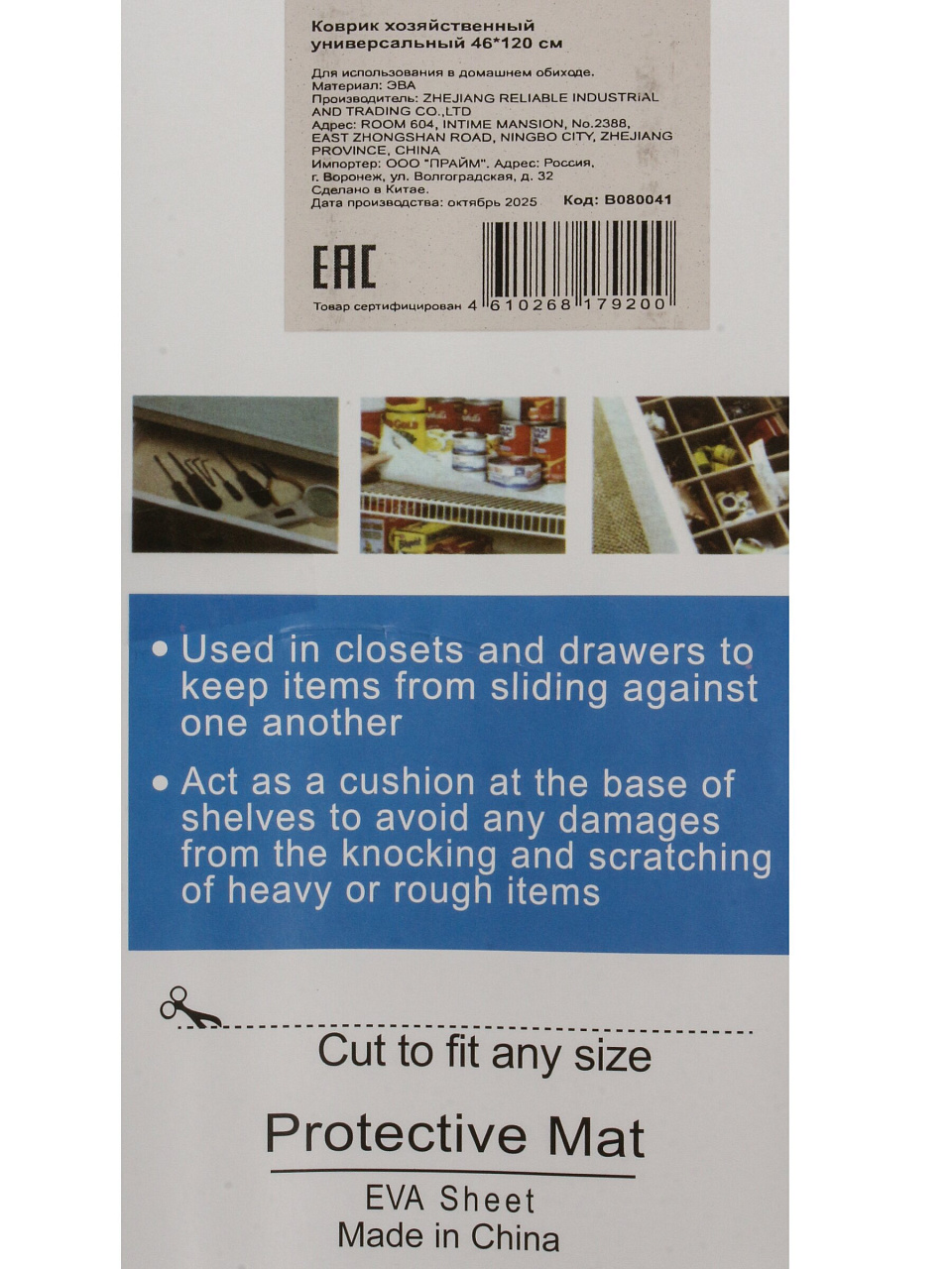 Коврик хозяйственный, 46х120 см, прямоугольный, универсальный, без рисунка, B080041